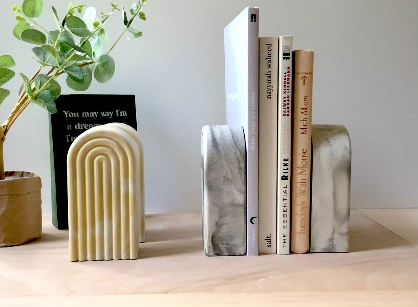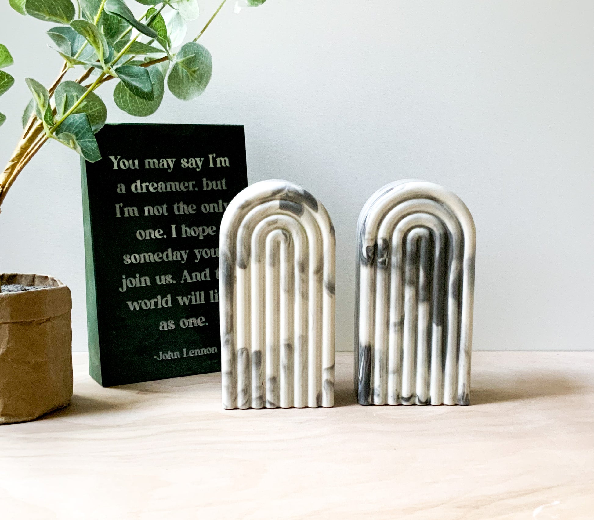 Modern Minimal Black And White Marble Arch Bookend Set For Home Decor