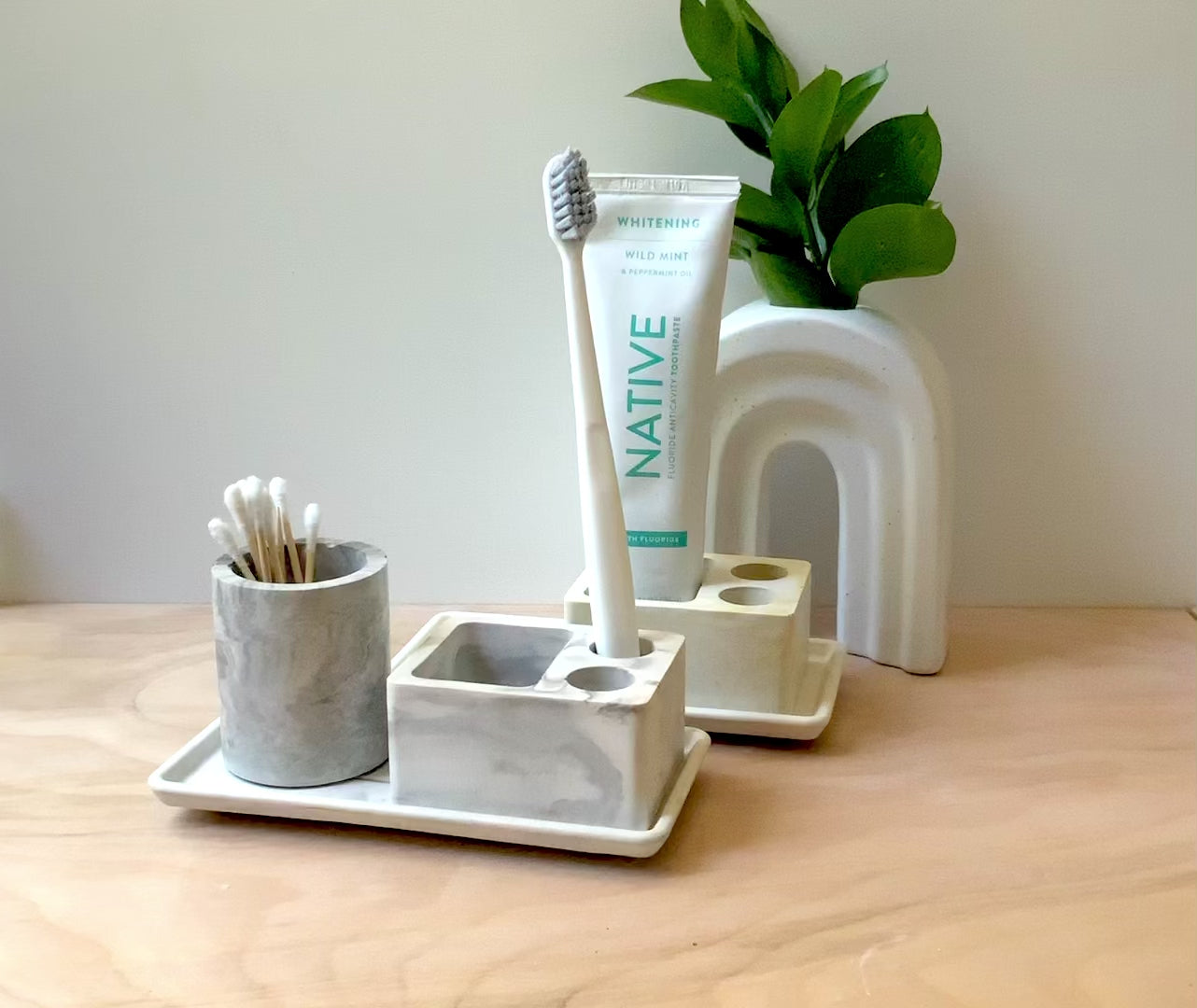 Cement Toothbrush Tray Marble Decor for Bathroom Counter Minimalist Organizer