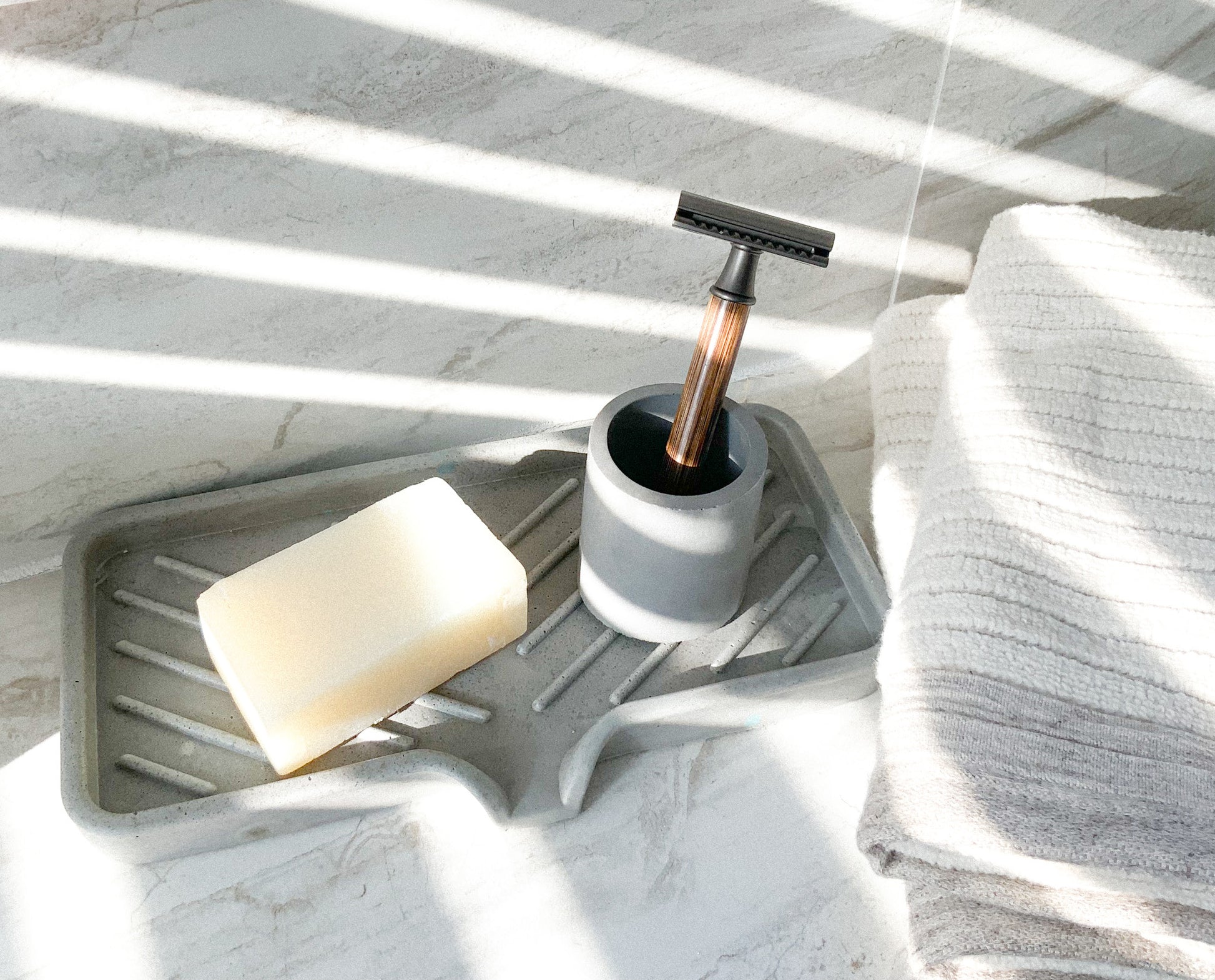 This modern stone soap dish fits with any bathroom décor. Keep your bathroom counter, sink, and shower neat and clean with this specially designed soap holder. Sealed with a water-based, eco-friendly sealant to ensure longevity of the finish. Small rubber feet are attached to the bottom to prevent slippage and scratching of surfaces.