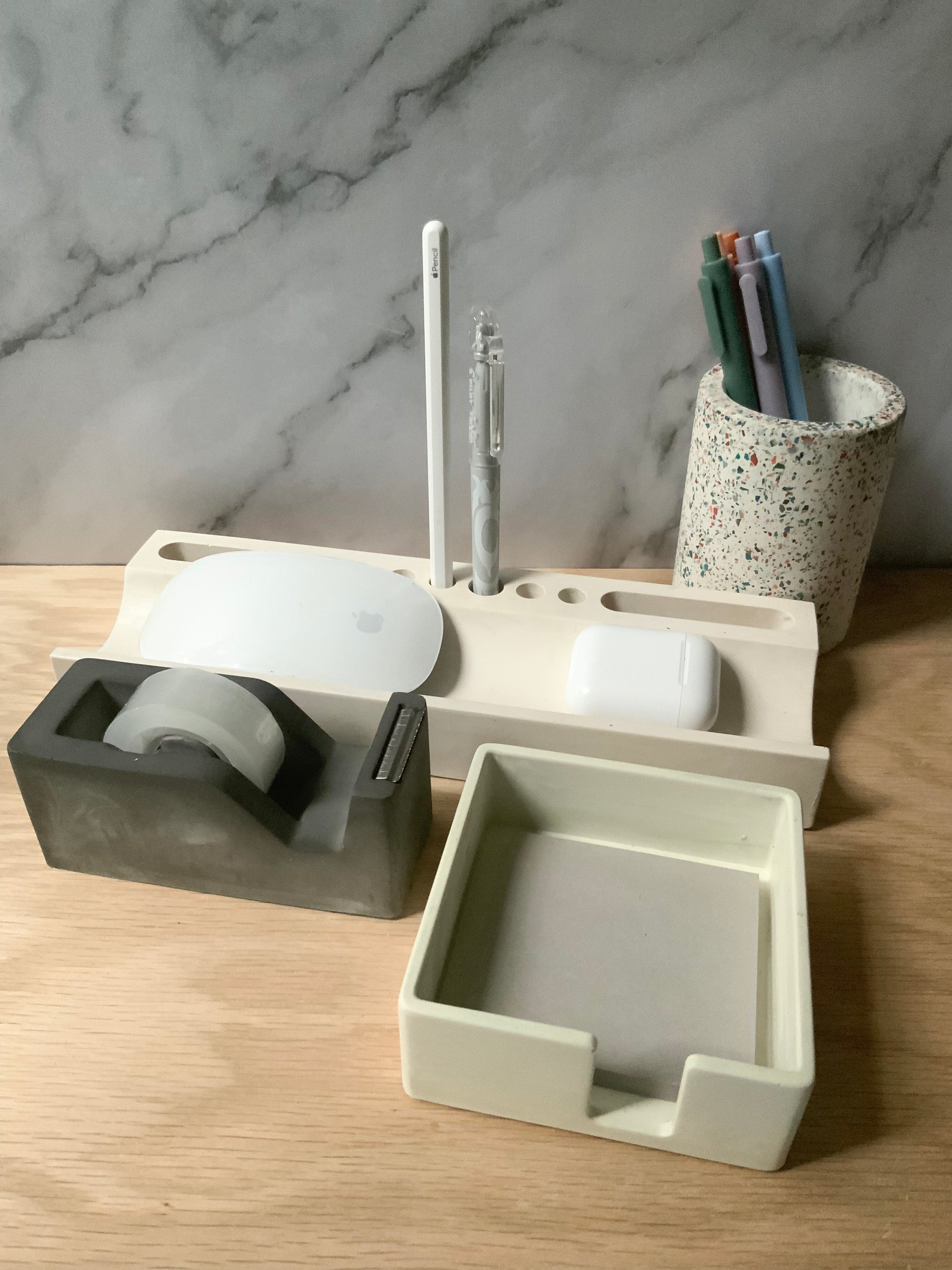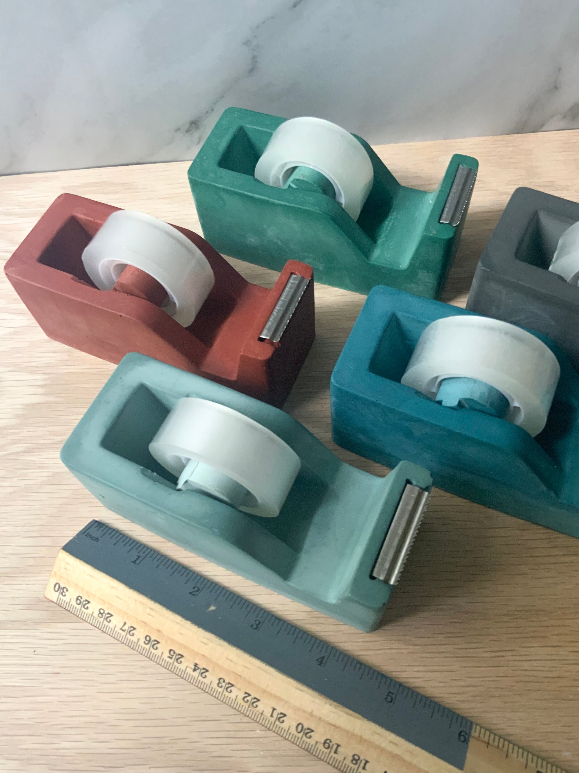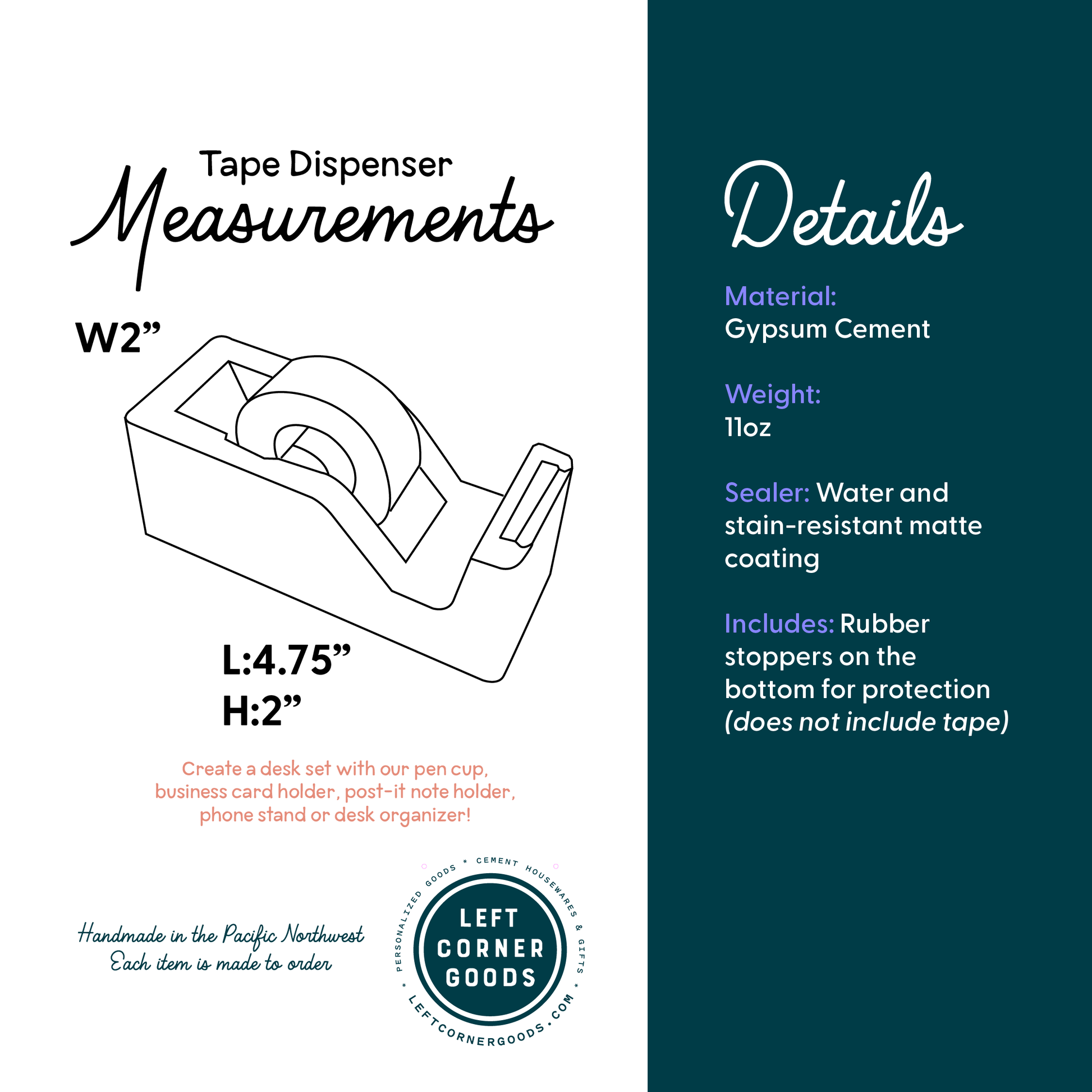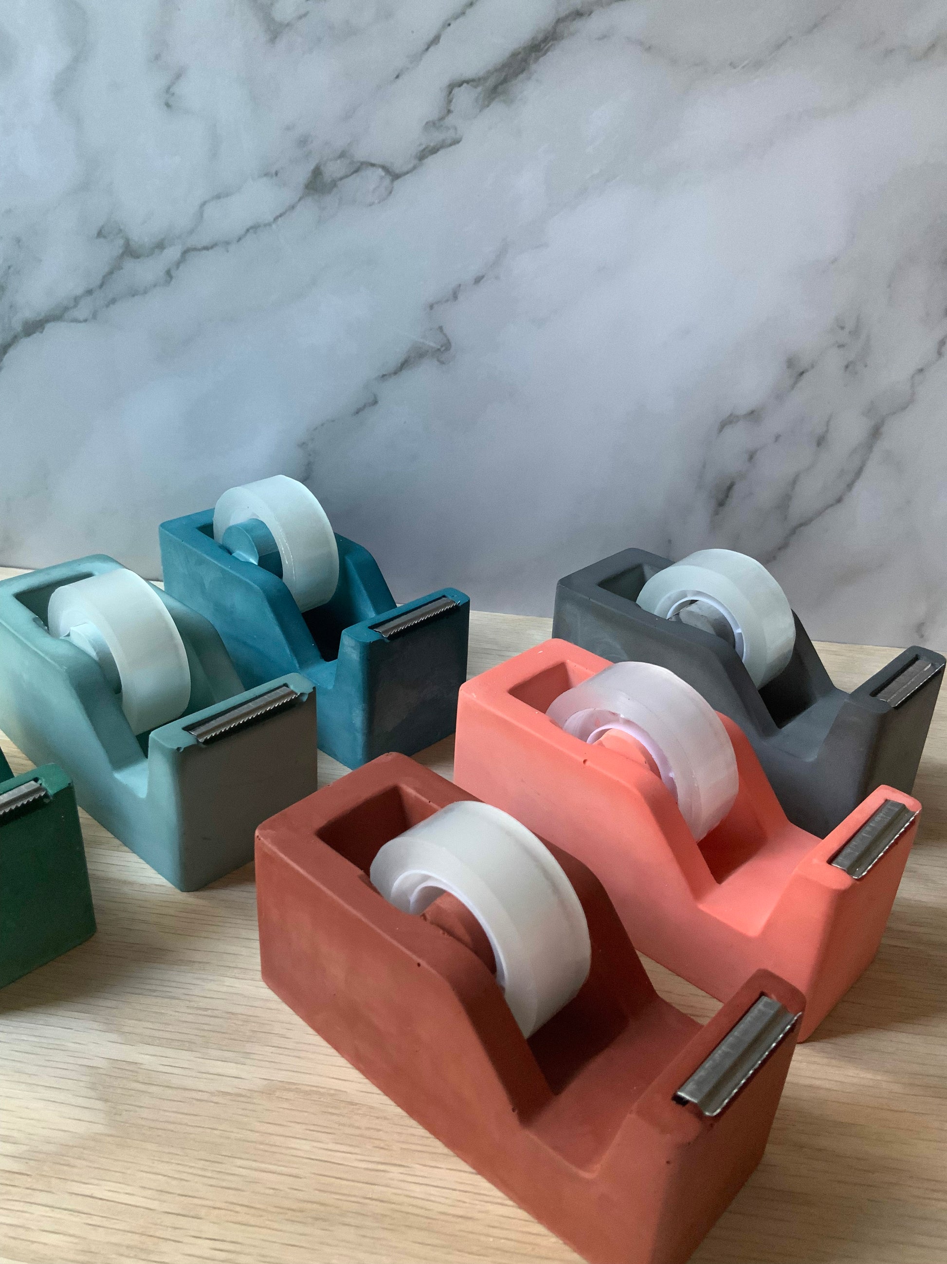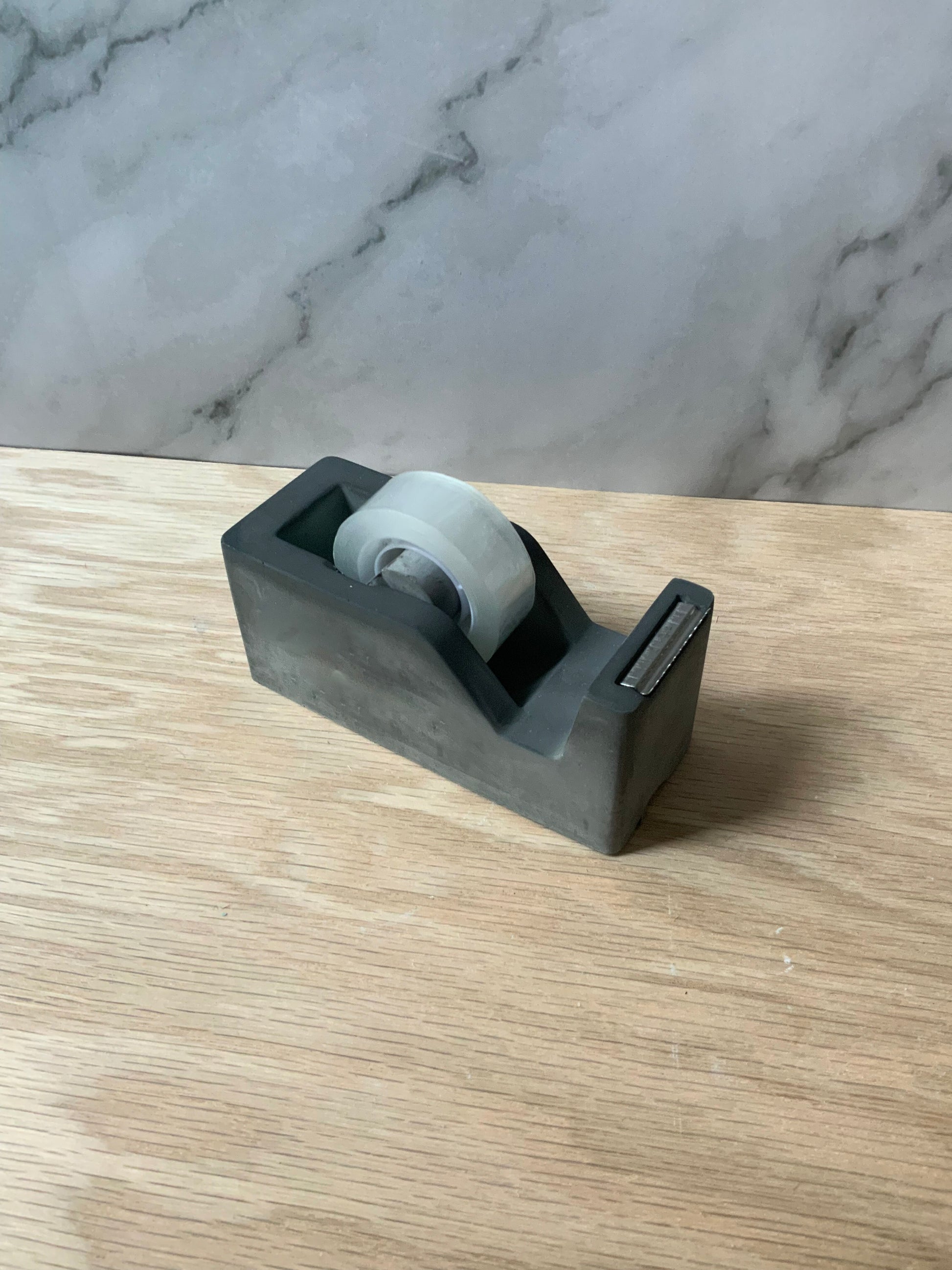Our modern and industrial Cement Tape Dispenser will be a stylish addition to your workspace that seamlessly blends functionality with aesthetics. The sleek and minimalist design of the cement exterior complements any decor, this tape dispenser effortlessly dispenses standard-sized tapes, providing a smooth and efficient experience.