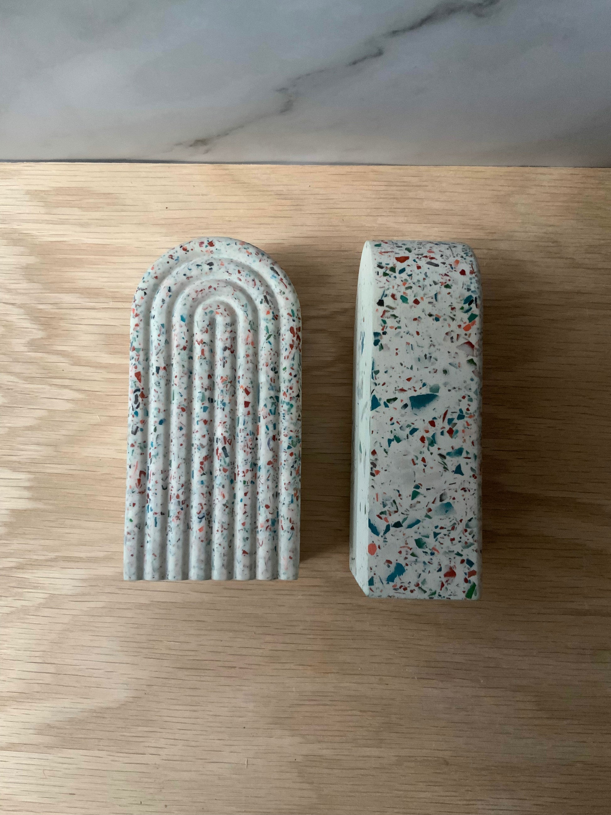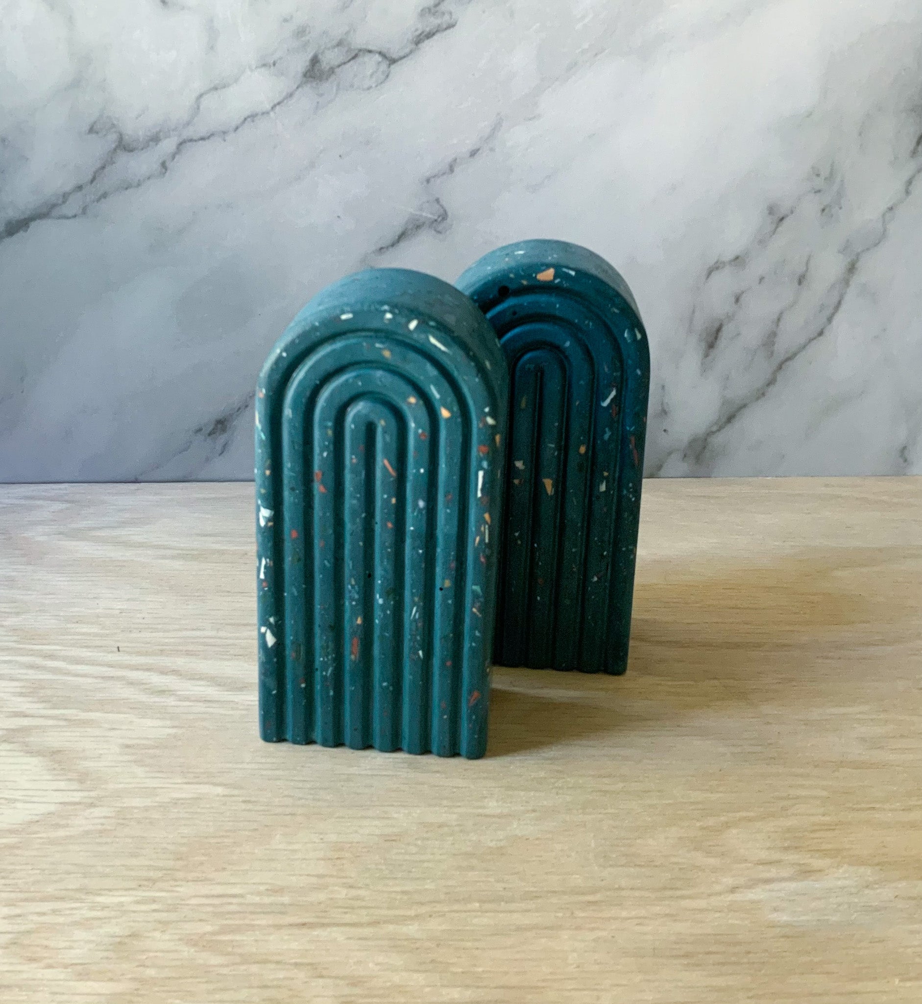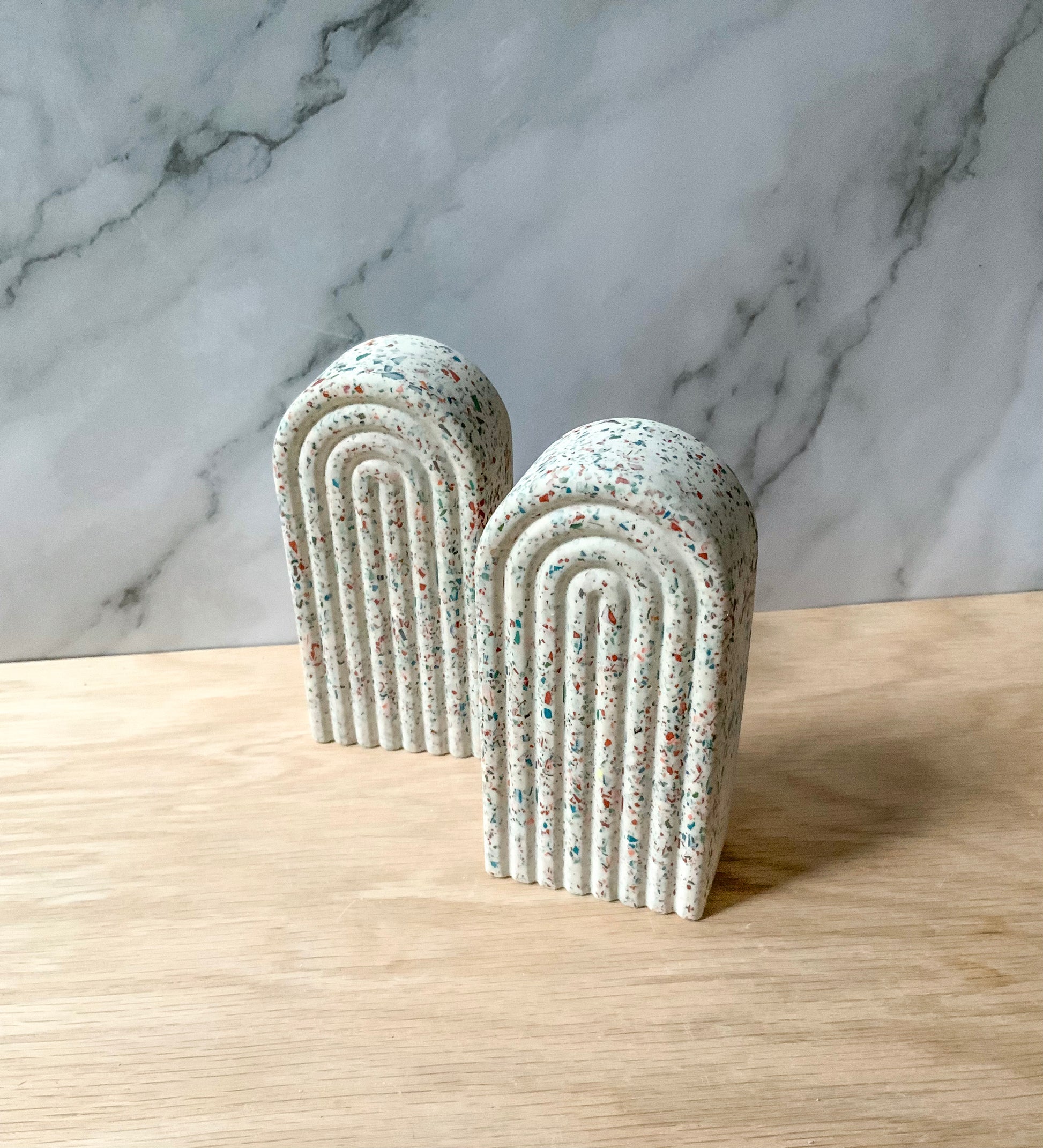 Terrazzo Arch Bookend set | Modern home decor | concrete stone