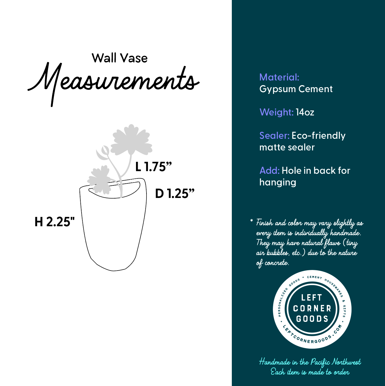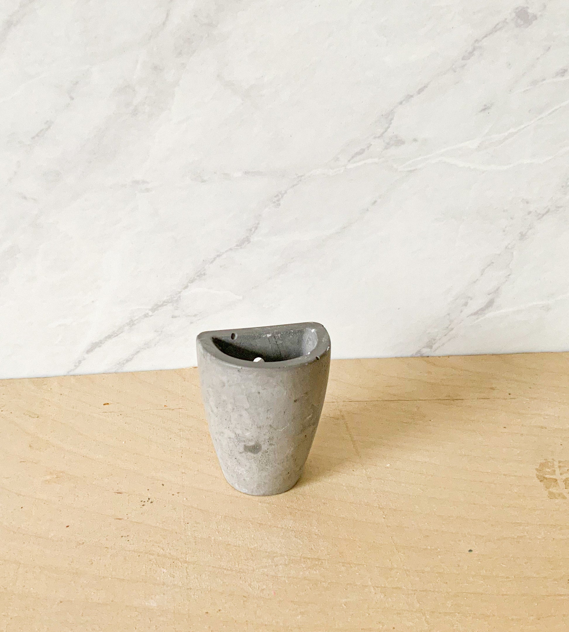 Bring a touch of modern simplicity to your walls with this small concrete wall planter. Designed with a minimalist aesthetic, it’s perfect for displaying air plants, dried flowers, succulents, or small decorative accents in any room. With a hole in the back simply hang with a nail, or use a 3M strip for hanging.