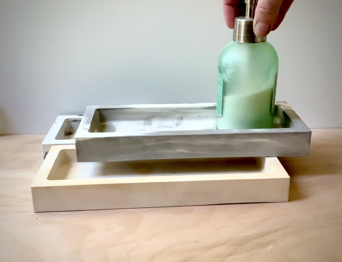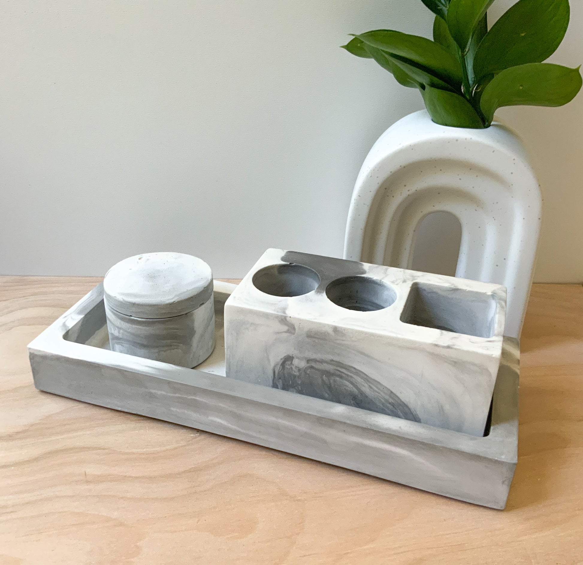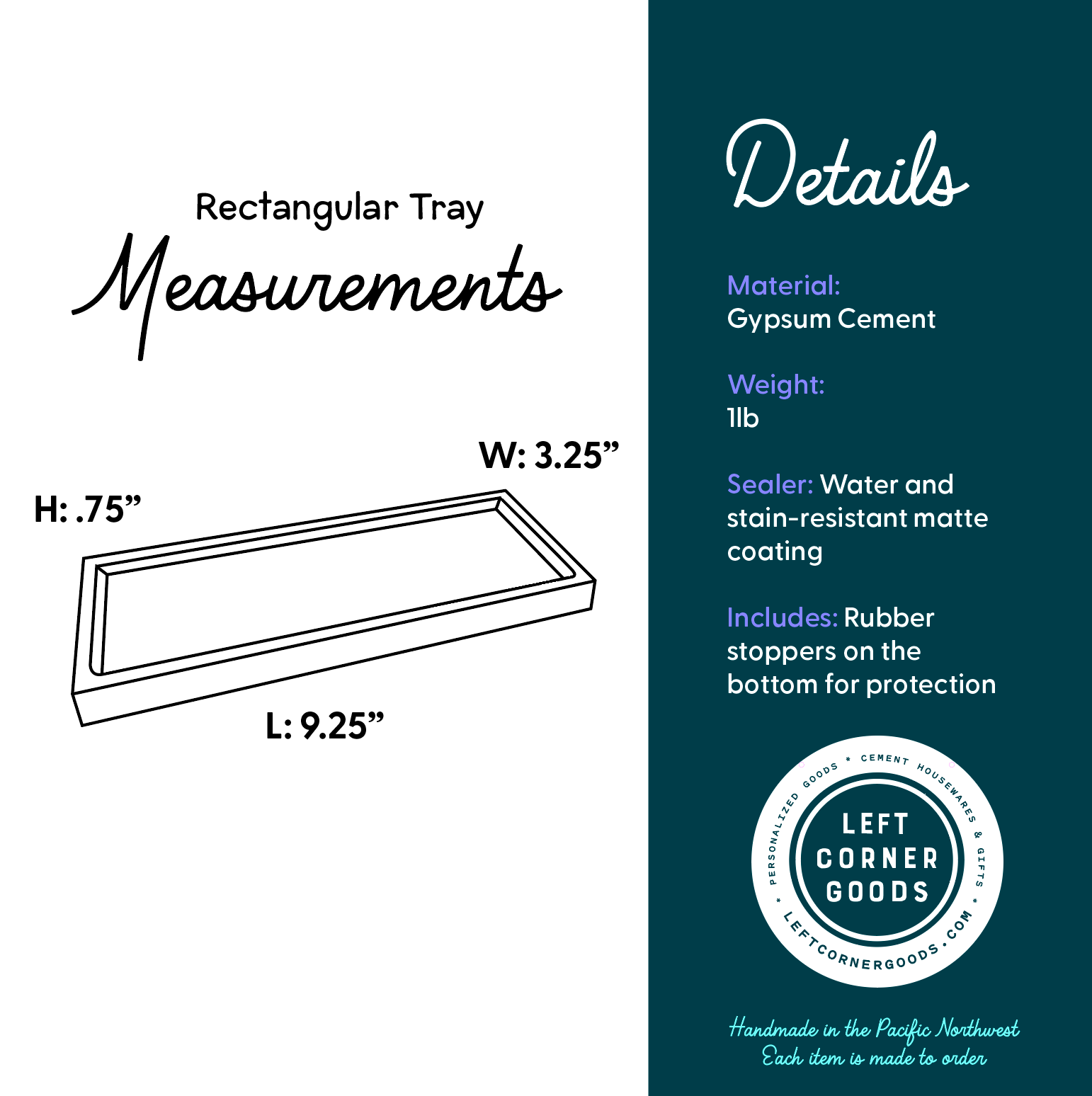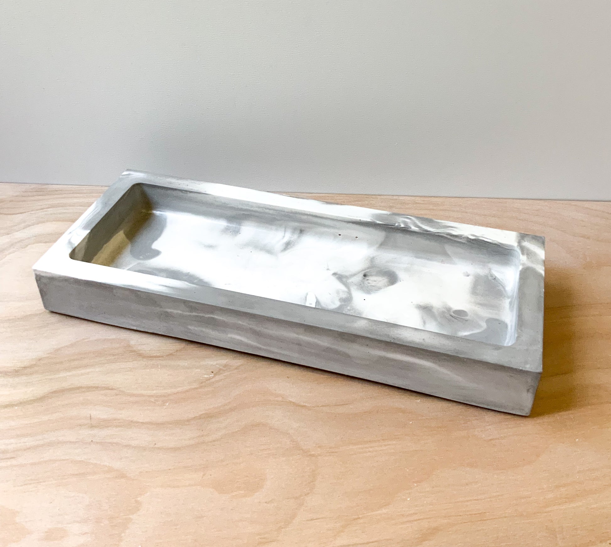 Large Modern Concrete Rectangle Tray for Bathroom Candle Trinket Catchall Storage