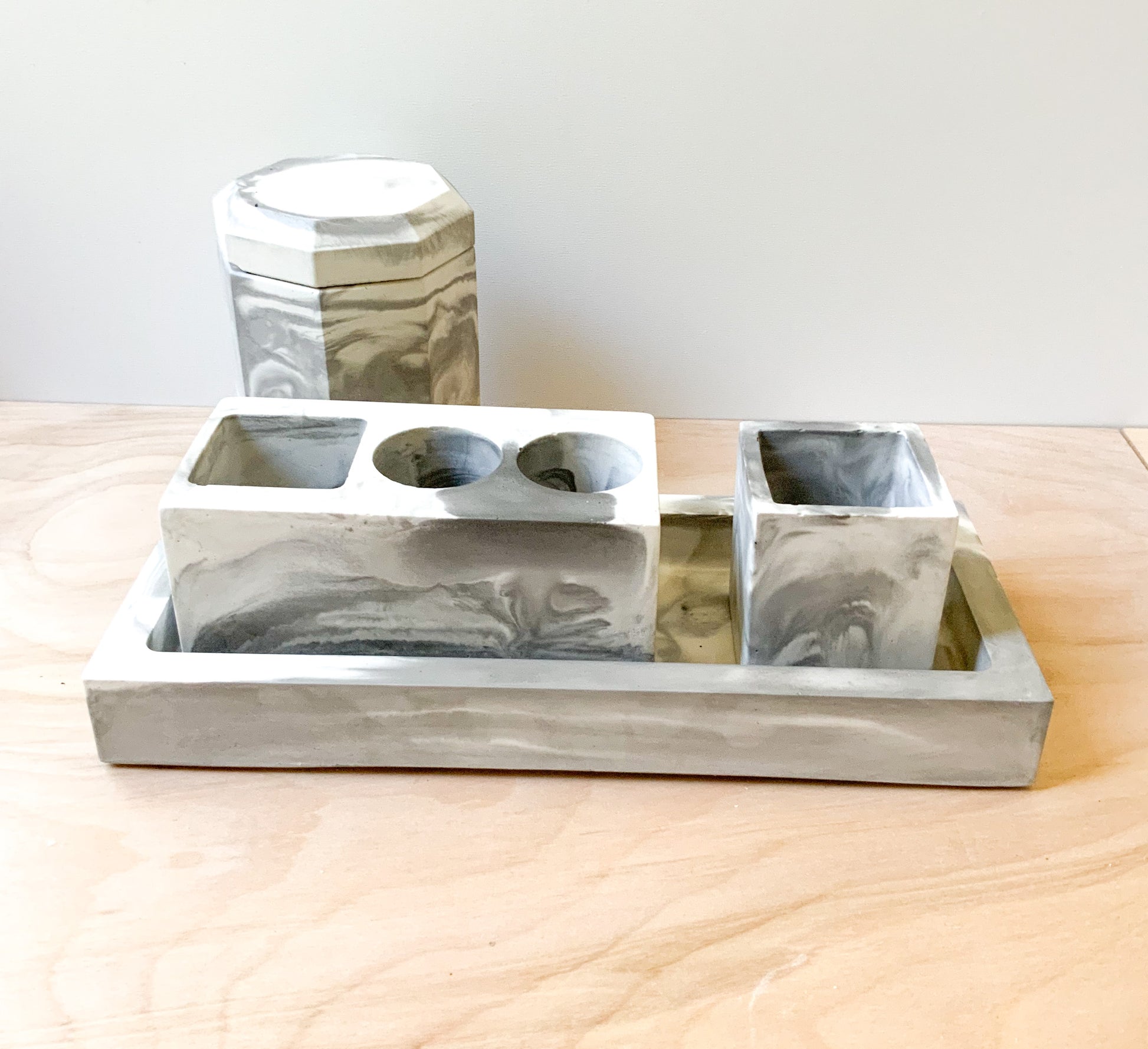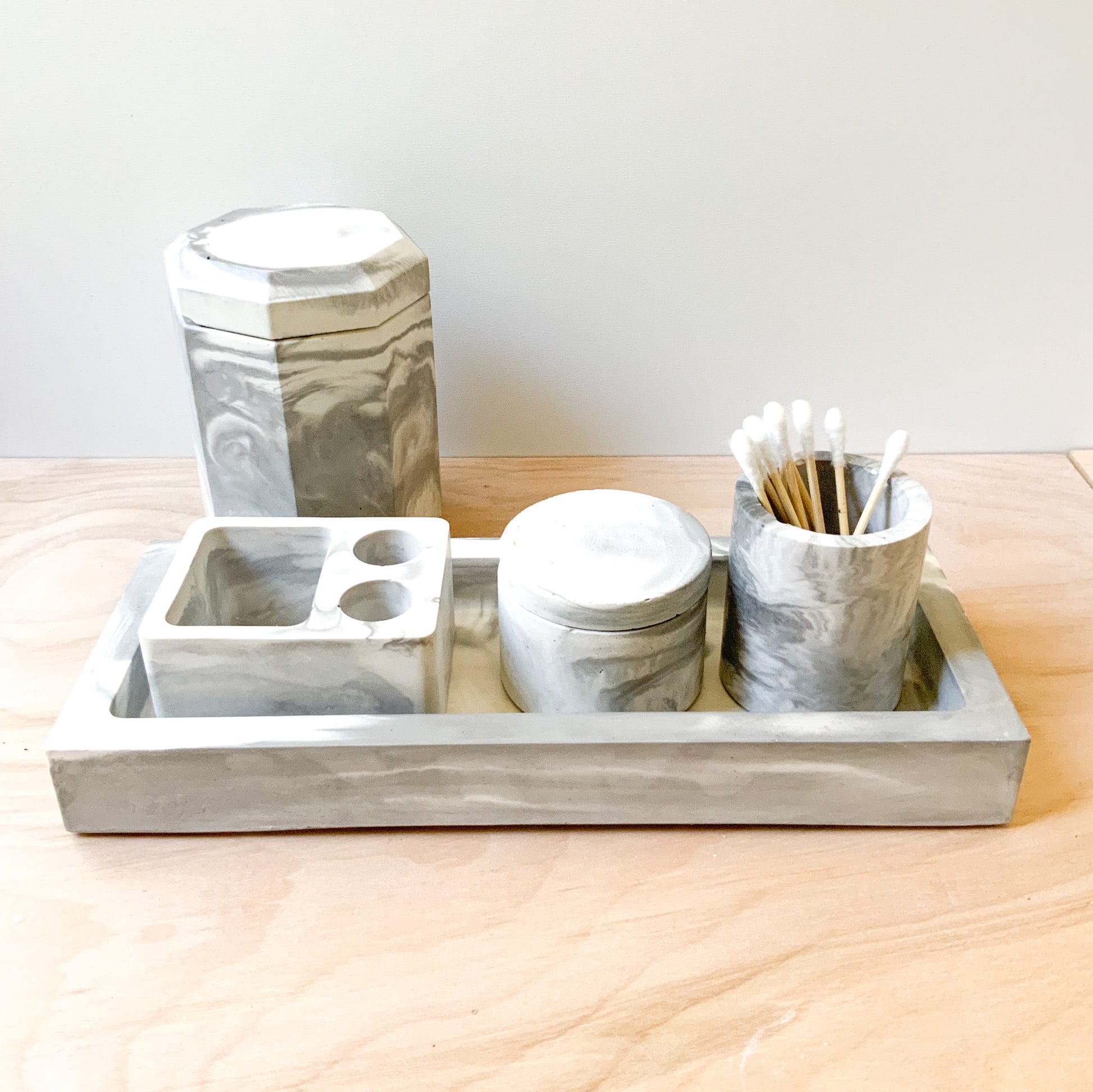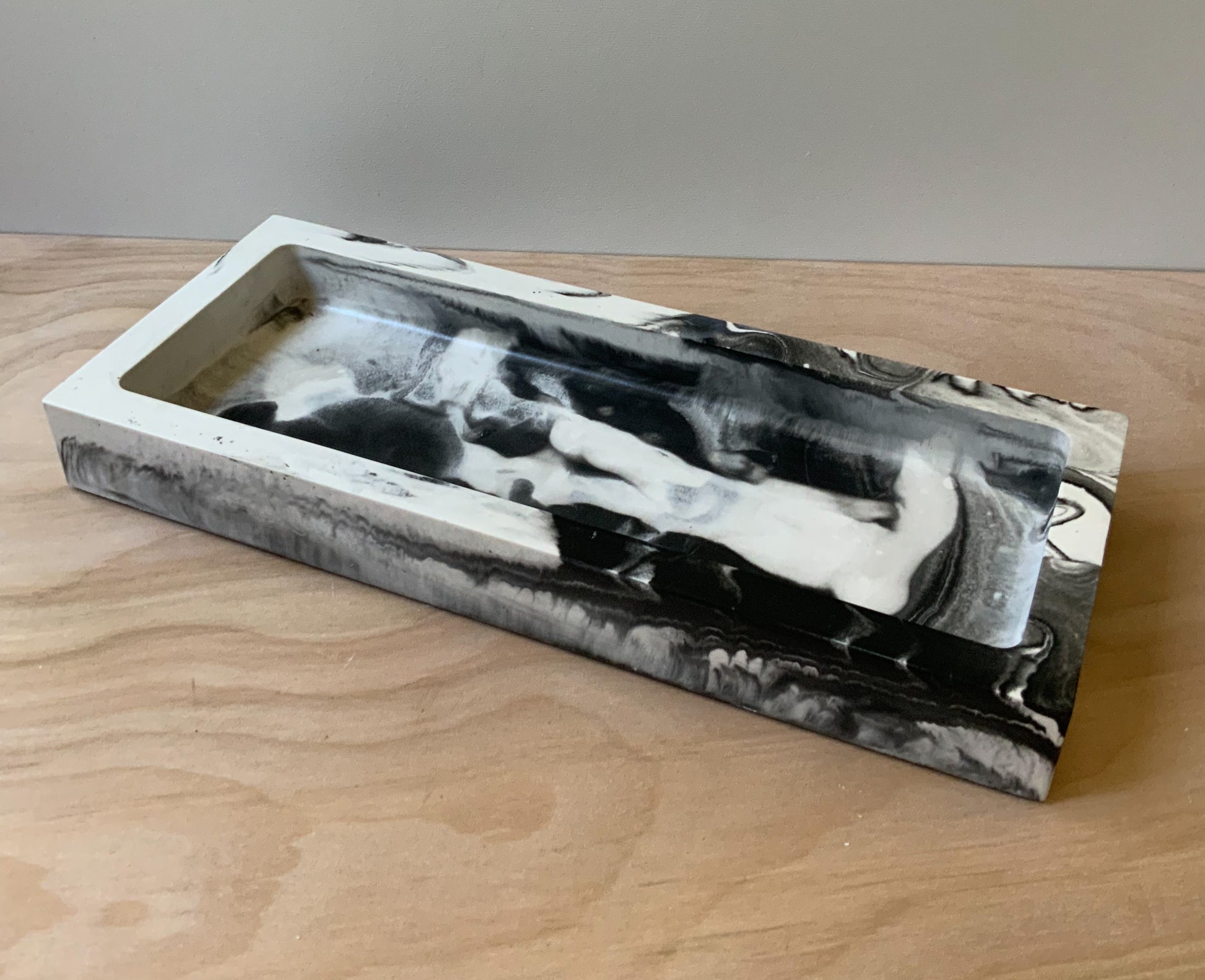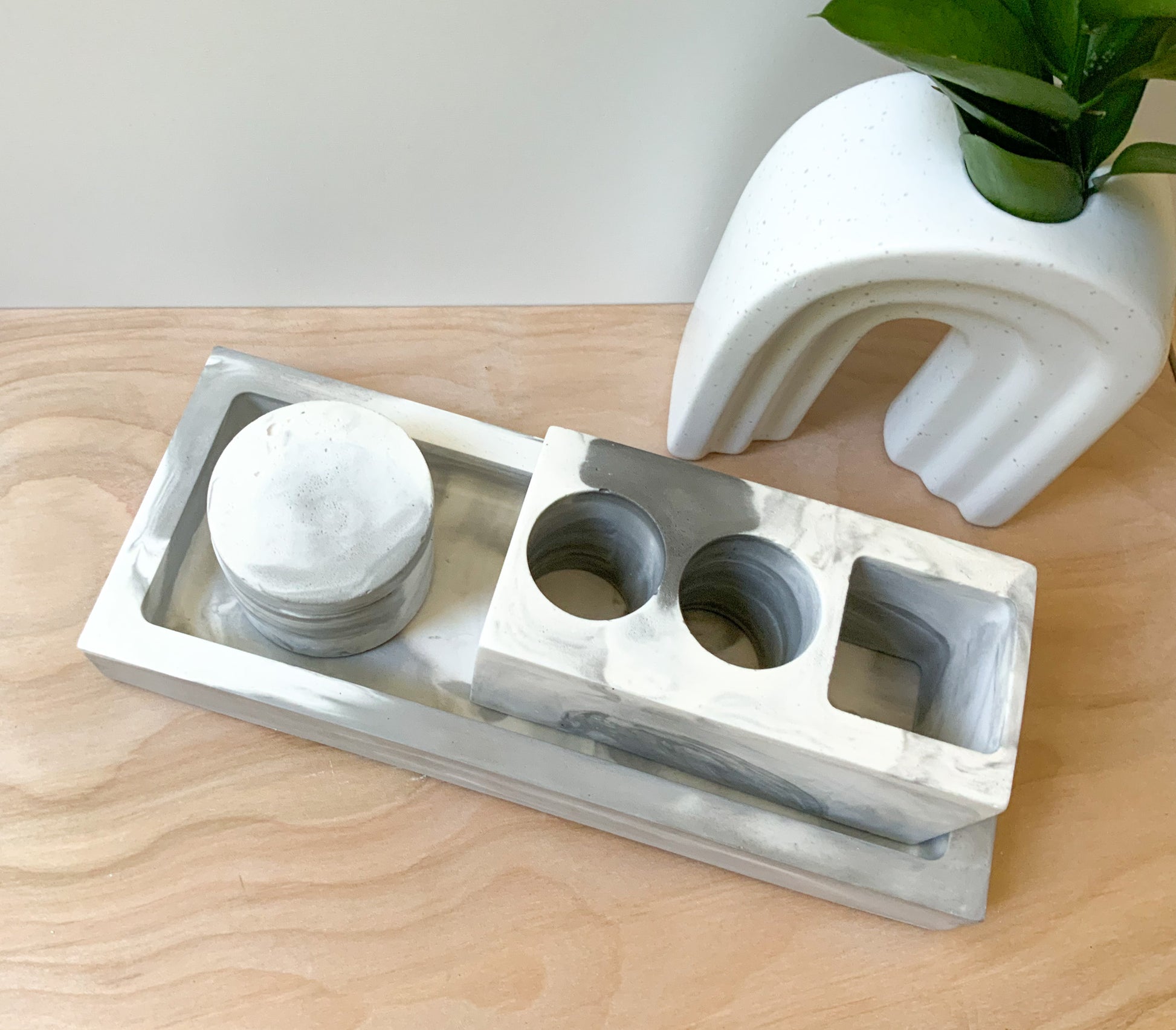 Large Modern Concrete Rectangle Tray for Bathroom Candle Trinket Catchall Storage
