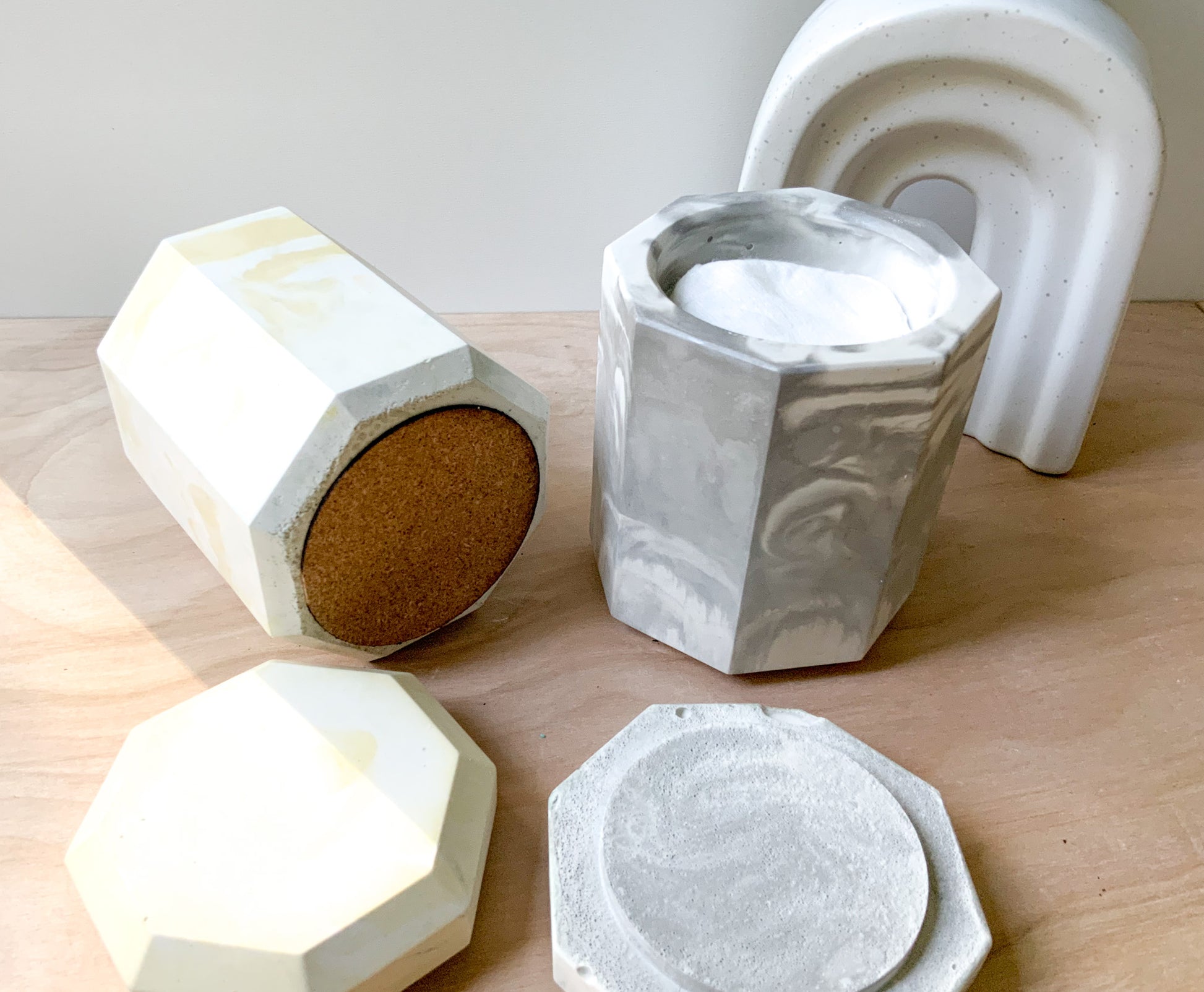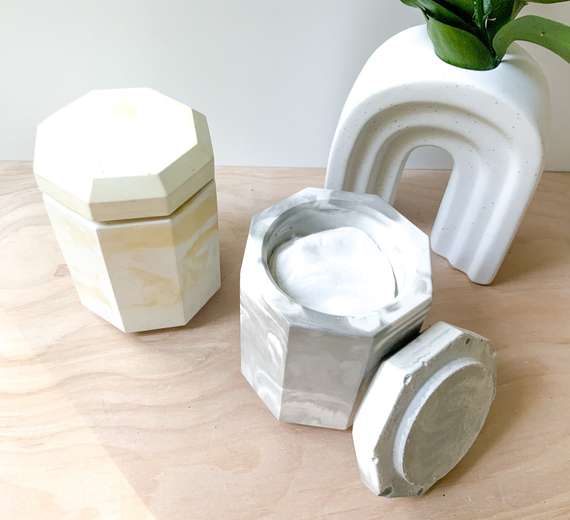 Marble Look Gypsum Cement Storage Jar with Lid for Bathroom Jewelry Cotton Pads Makeup