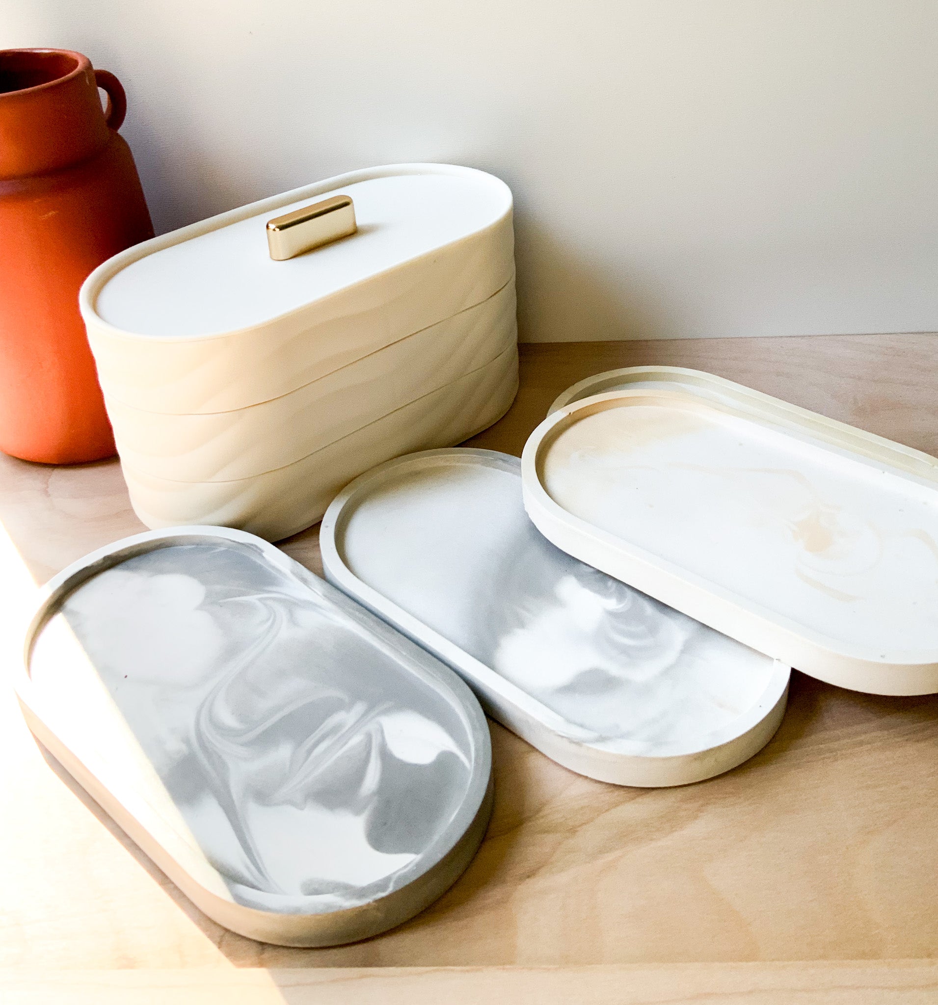 Minimalist Marbled Concrete Tray - Decorative Home Oval Centerpiece