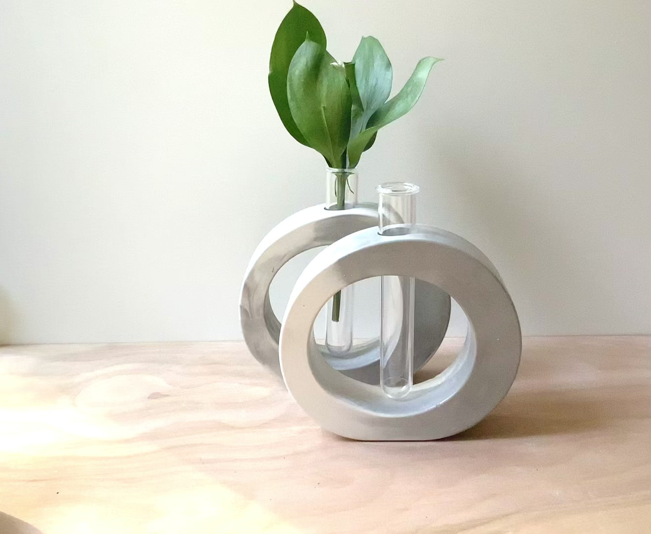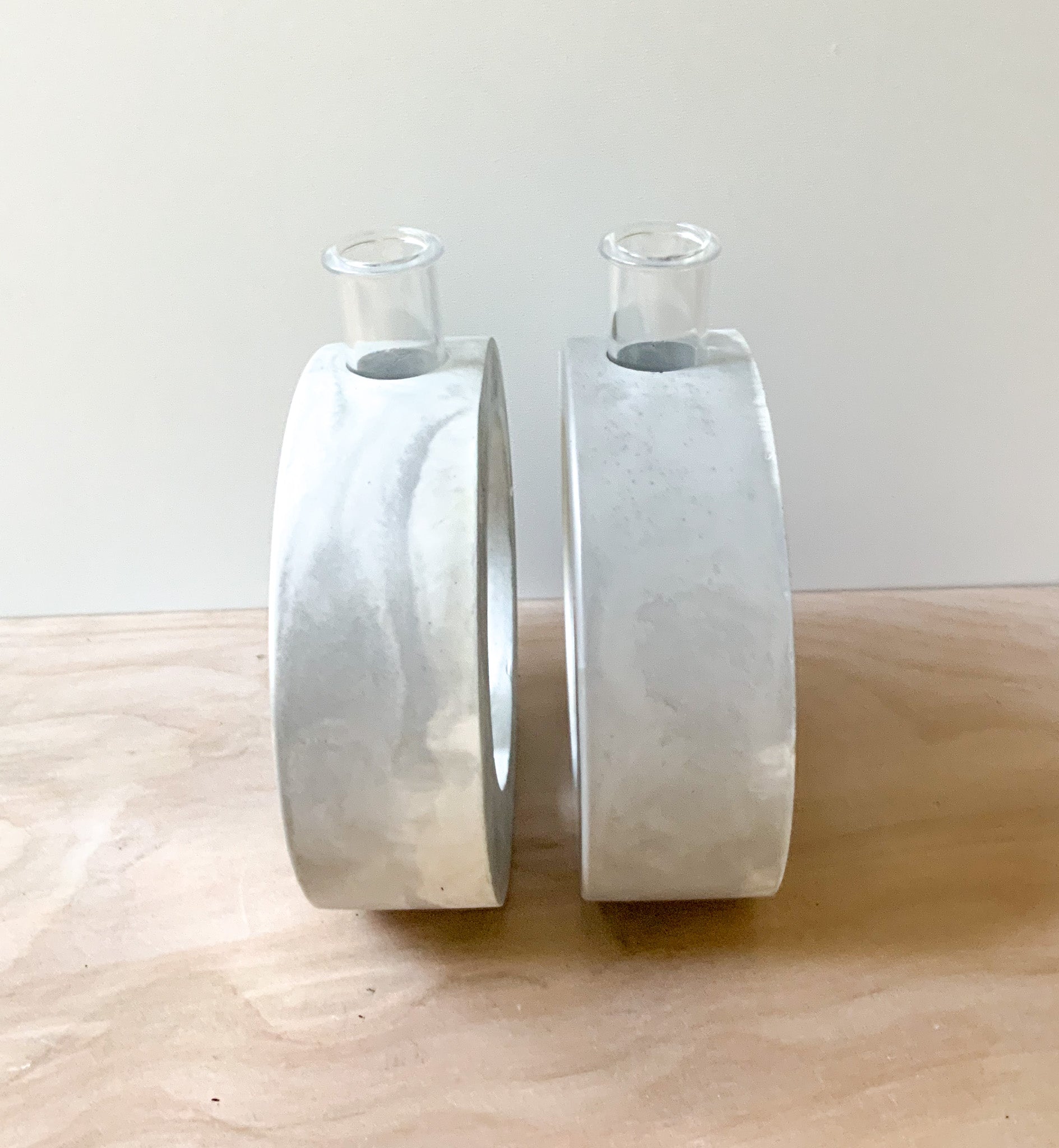 This sleek and stylish bud vase or propagation station will be sure to excite any bookshelf, countertop, or windowsill. It looks gorgeous in the bathroom, next to a bedside, in your office, on a floating shelf in the kitchen; or anywhere you are looking for a pop of greenery without taking up too much space. They are luxurious and tactile - like holding a smooth, weighty rock. The round vase Includes an acrylic tube.