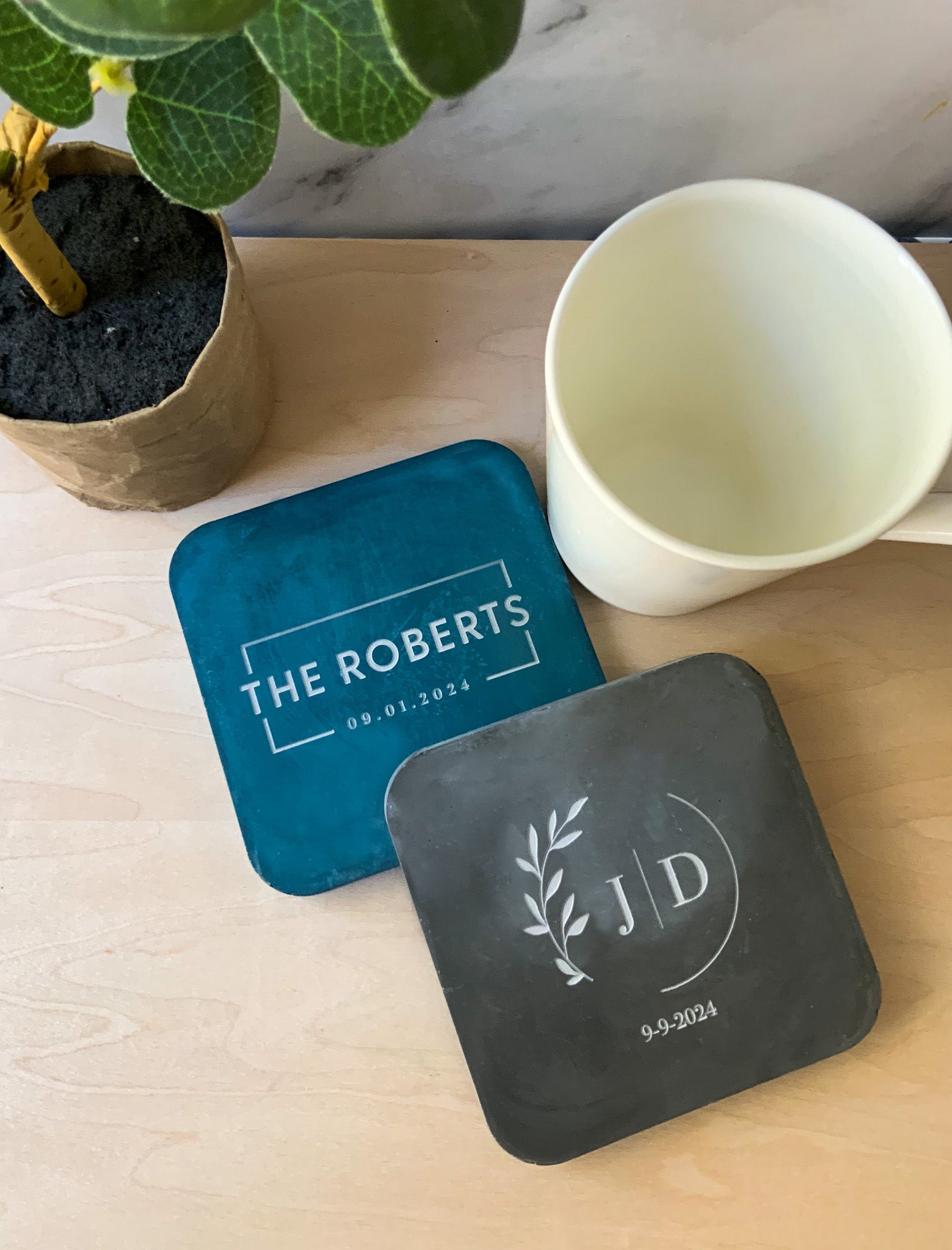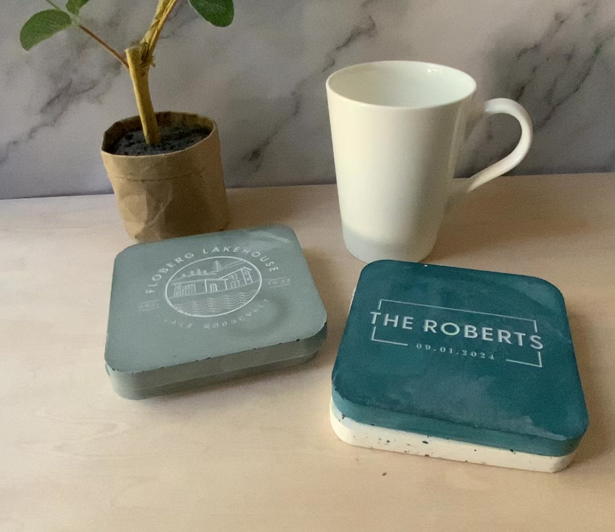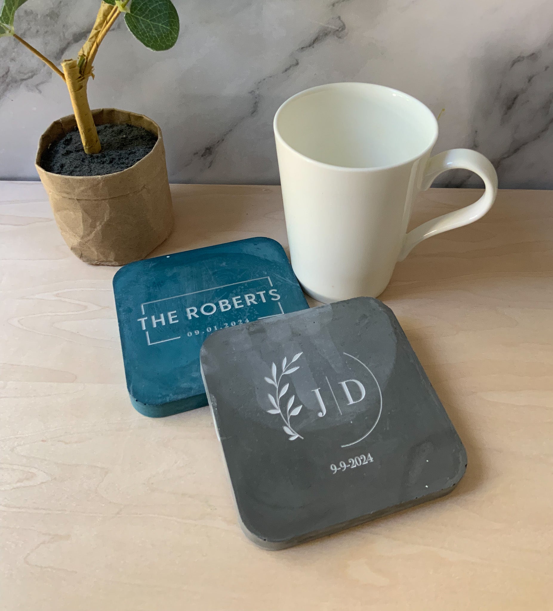 Personalized Coaster Set Gypsum Cement | Square modern coaster set of 4