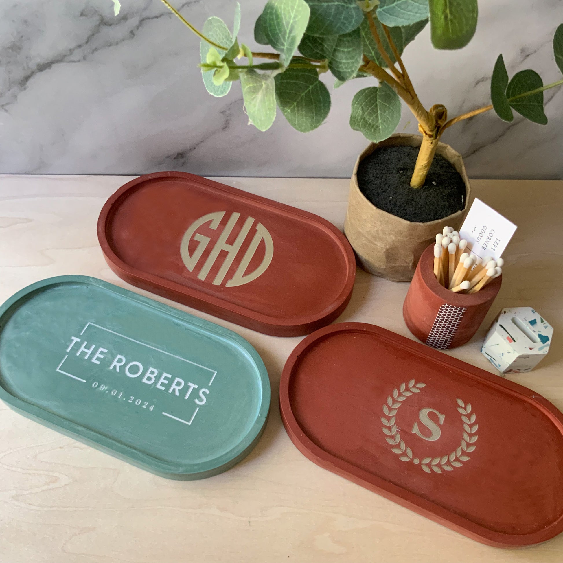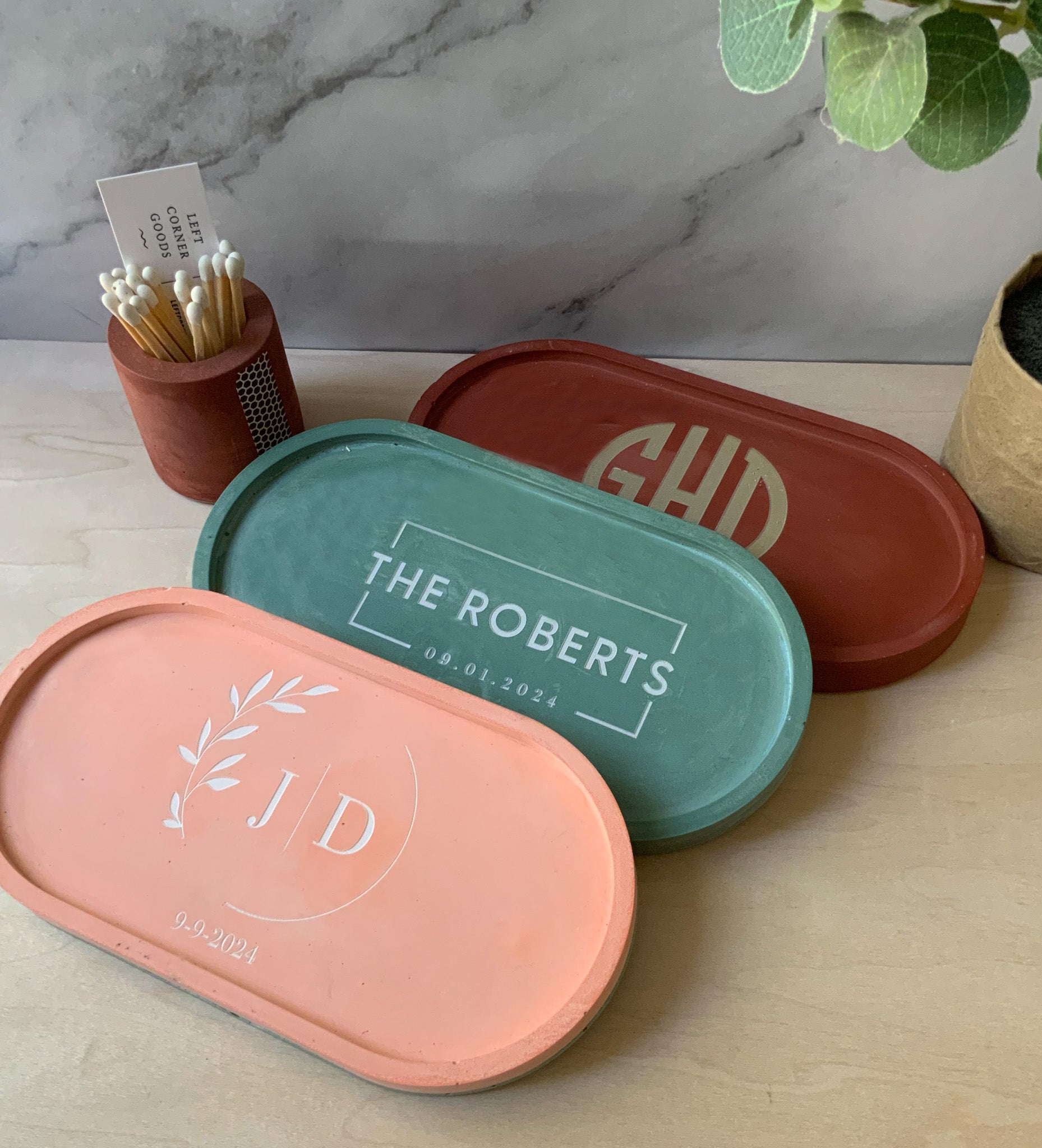 Personalized Concrete Oval Tray | candle tray | trinket tray modern