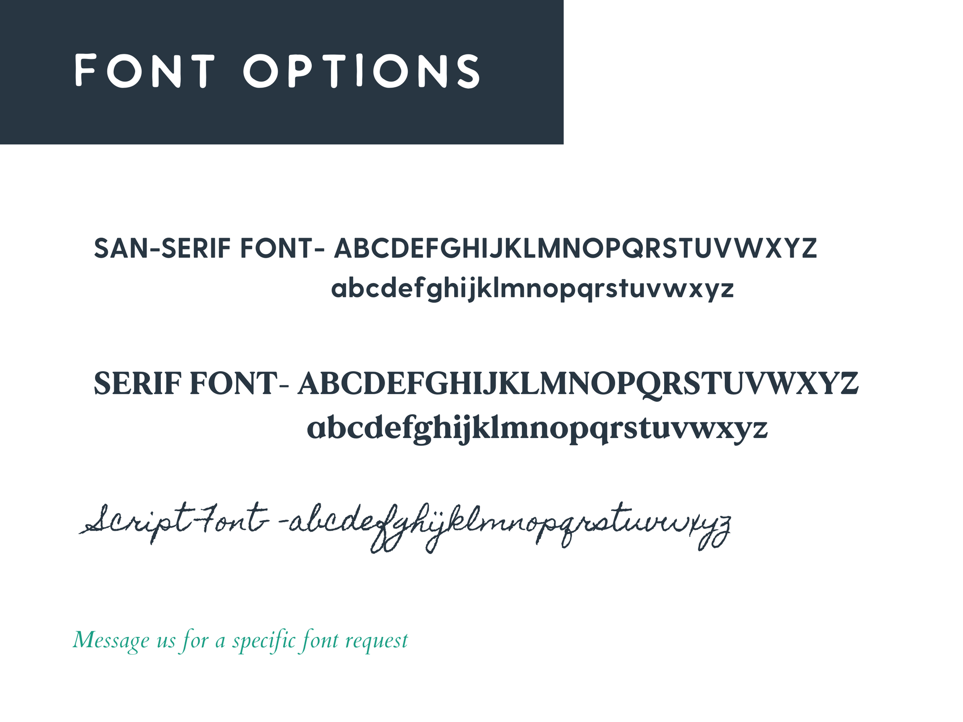 Options: Available in 9 colors (see color chart in pictures.) we also accept custom color requests, just send us a message!
