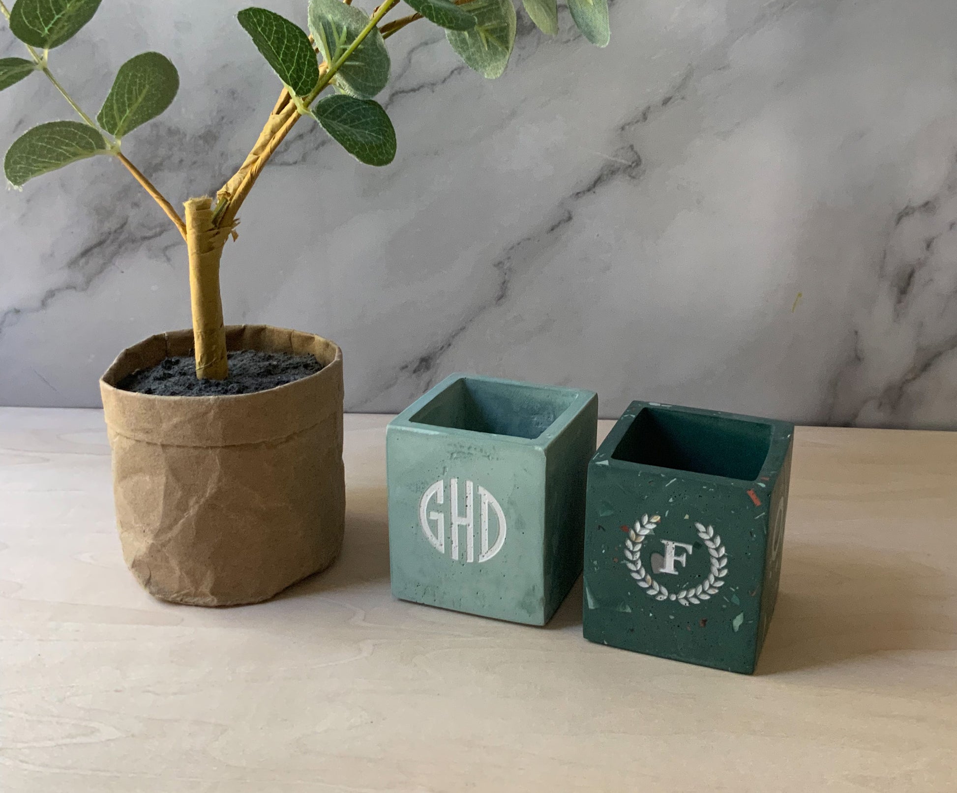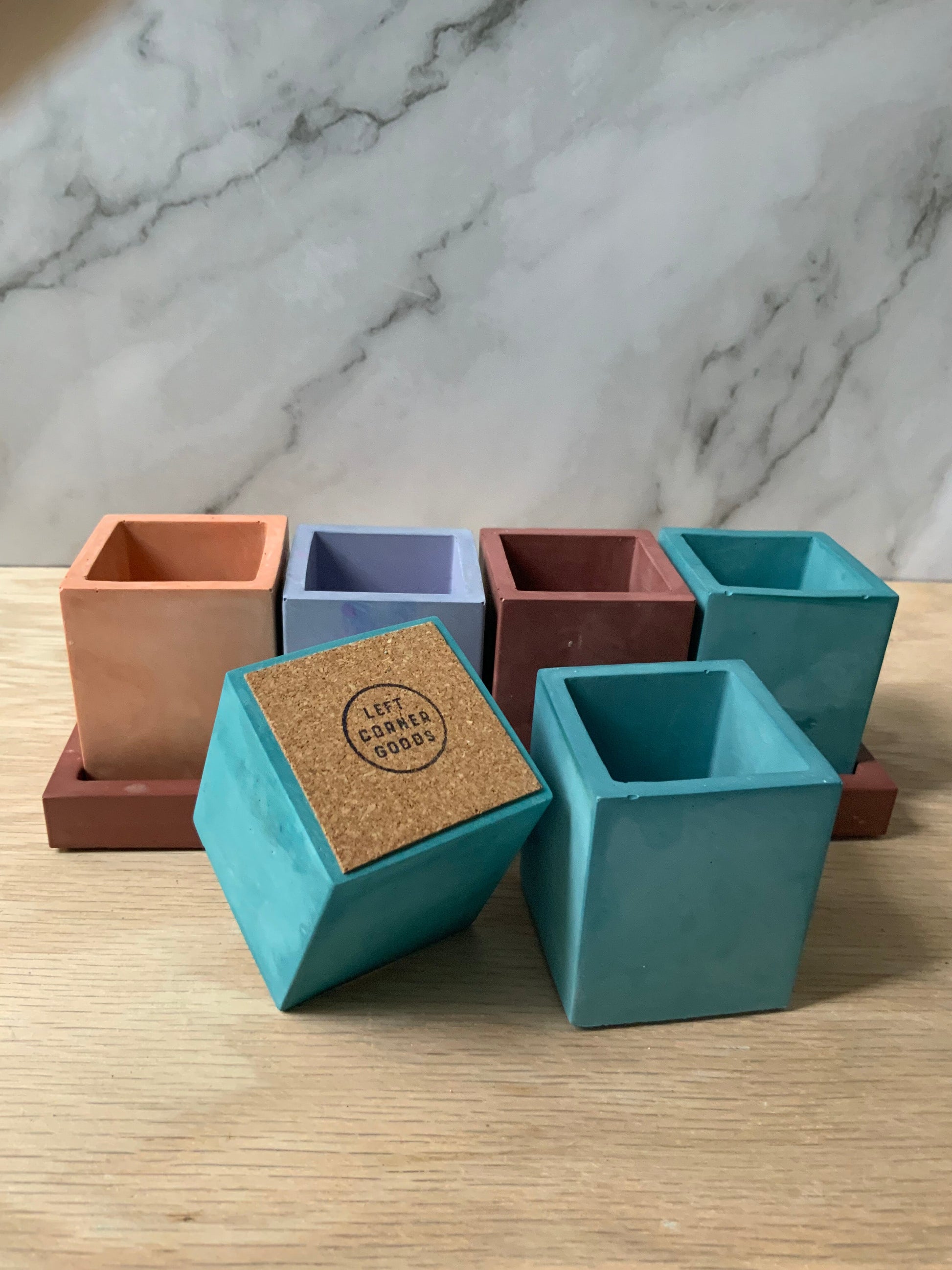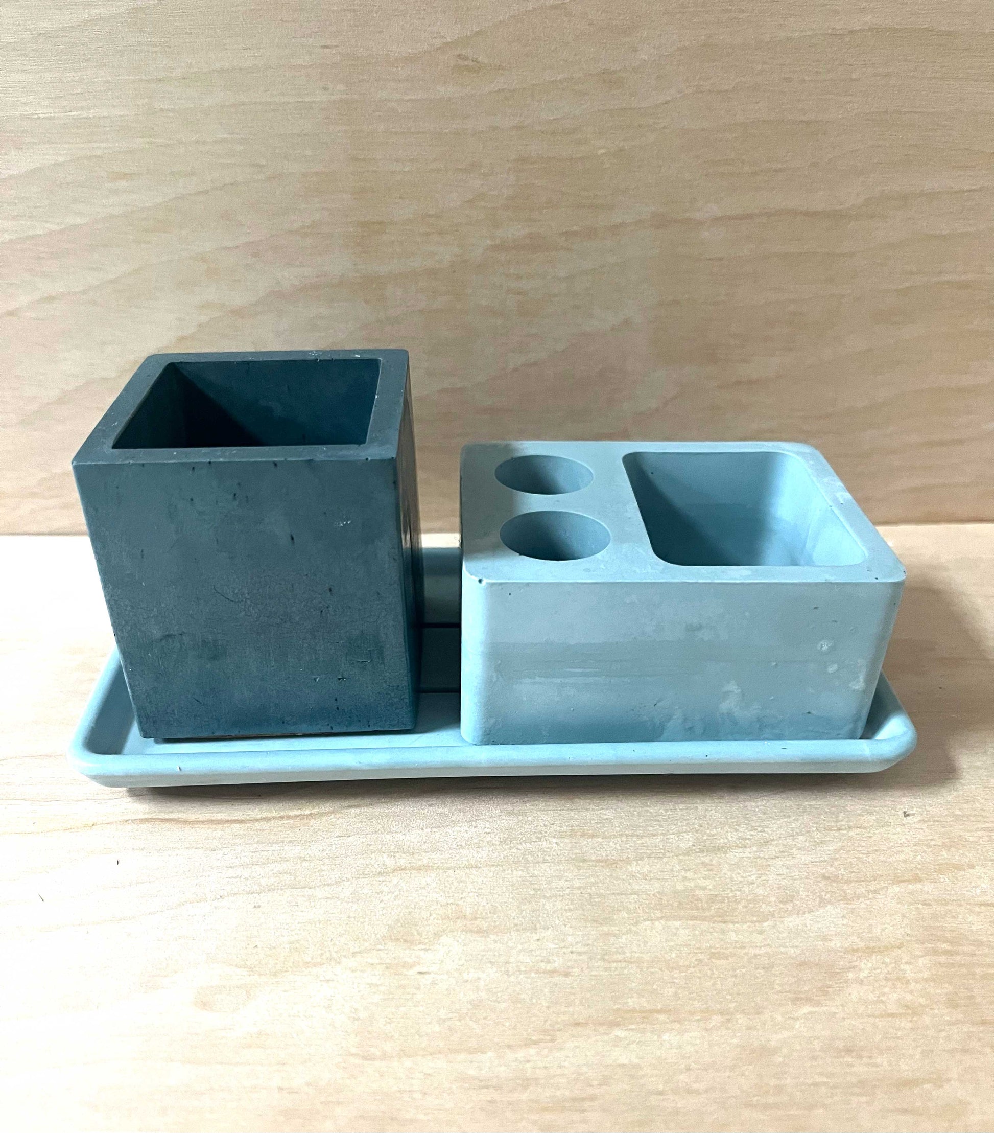 Description: This multipurpose, handmade concrete square vessel, pen pot, or storage cup can be used for toothbrushes, pens/pencils, coffee stir sticks, makeup brushes, air plants, small flowers, and much more. Pair it with our bathroom or desk accessories for a full set.