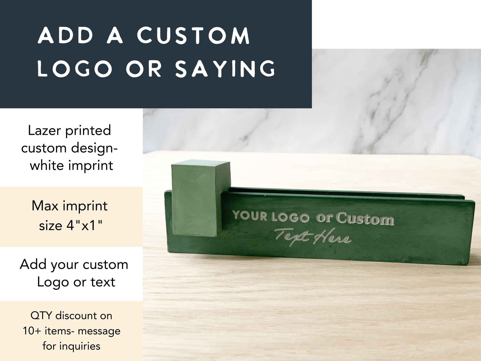 This listing includes custom text, or your logo laser etched on the top of the storage pot. Please send your custom text in the notes of your order, or email your logo to holly@leftcornerdesign.com - you will receive a proof of your text or logo on your piece before production.