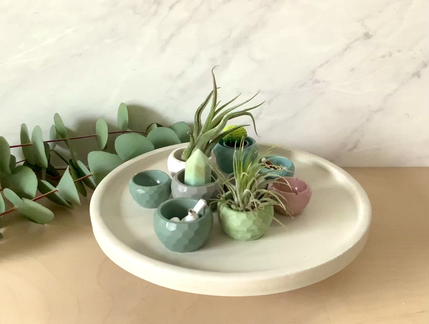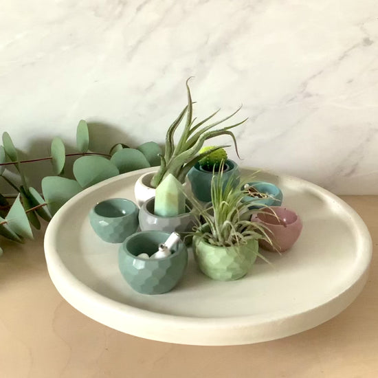 These small faceted concrete bowls are tiny but statement-making. Designed for modern shelves, desks, and styled corners, they bring color and sculptural texture to even the smallest spaces.
