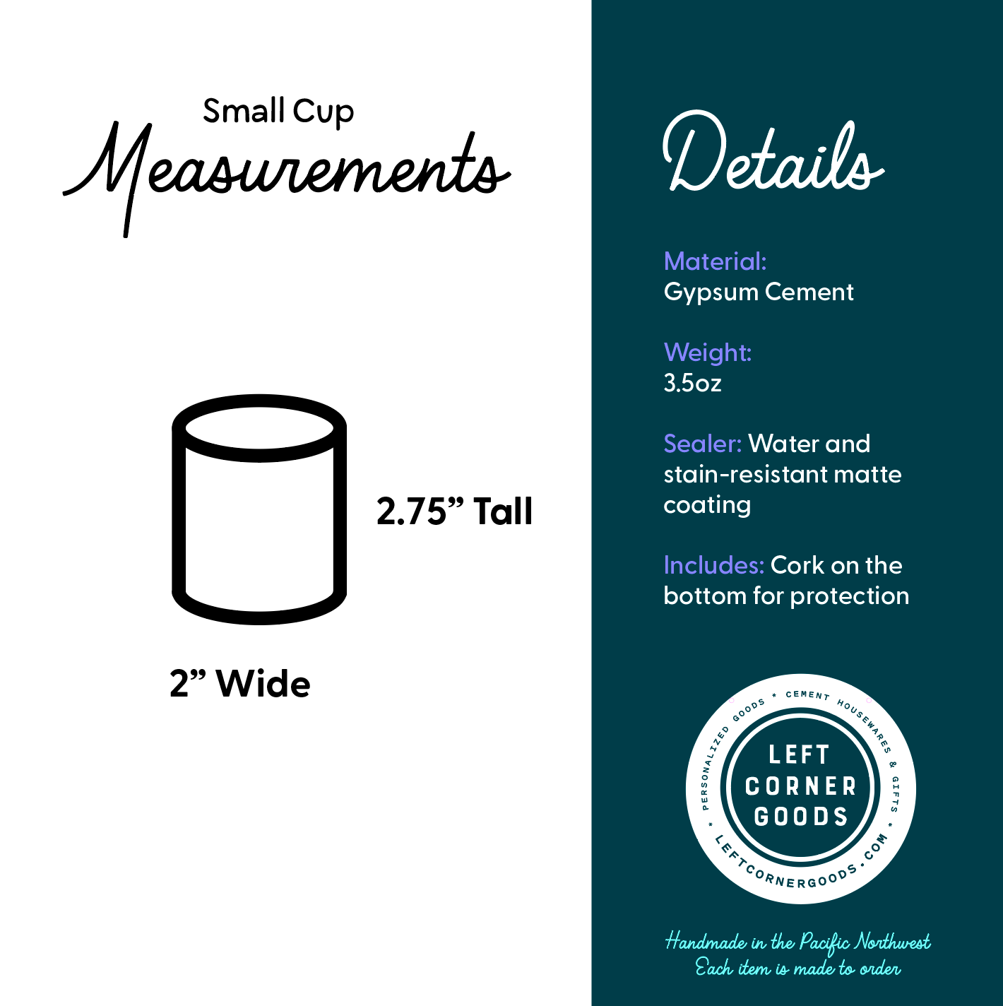 This listing includes custom text, or your logo laser etched on the cup. Please send your custom text in the notes of your order, or email your logo to holly@leftcornerdesign.com - you will receive a proof of your text or logo on your piece before production.