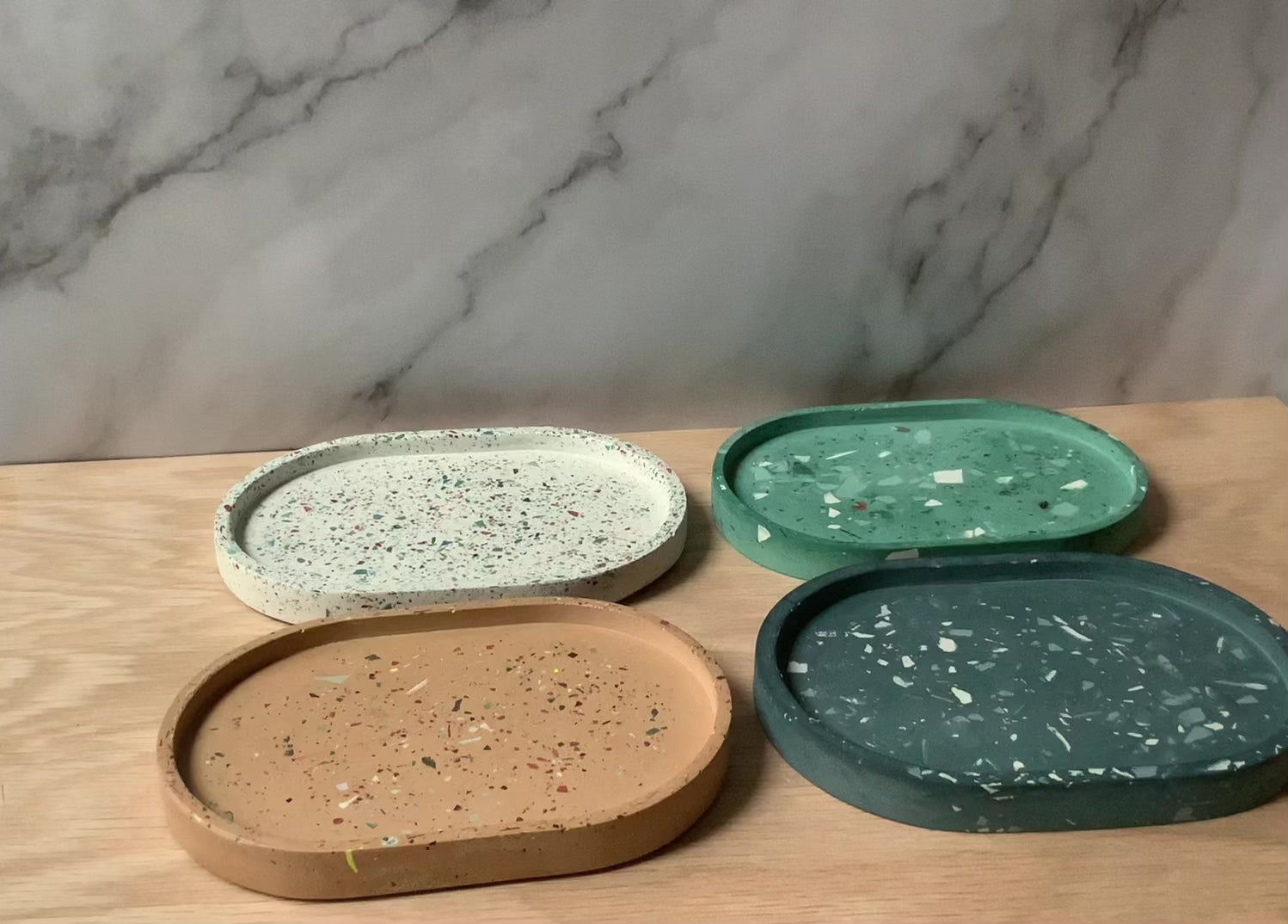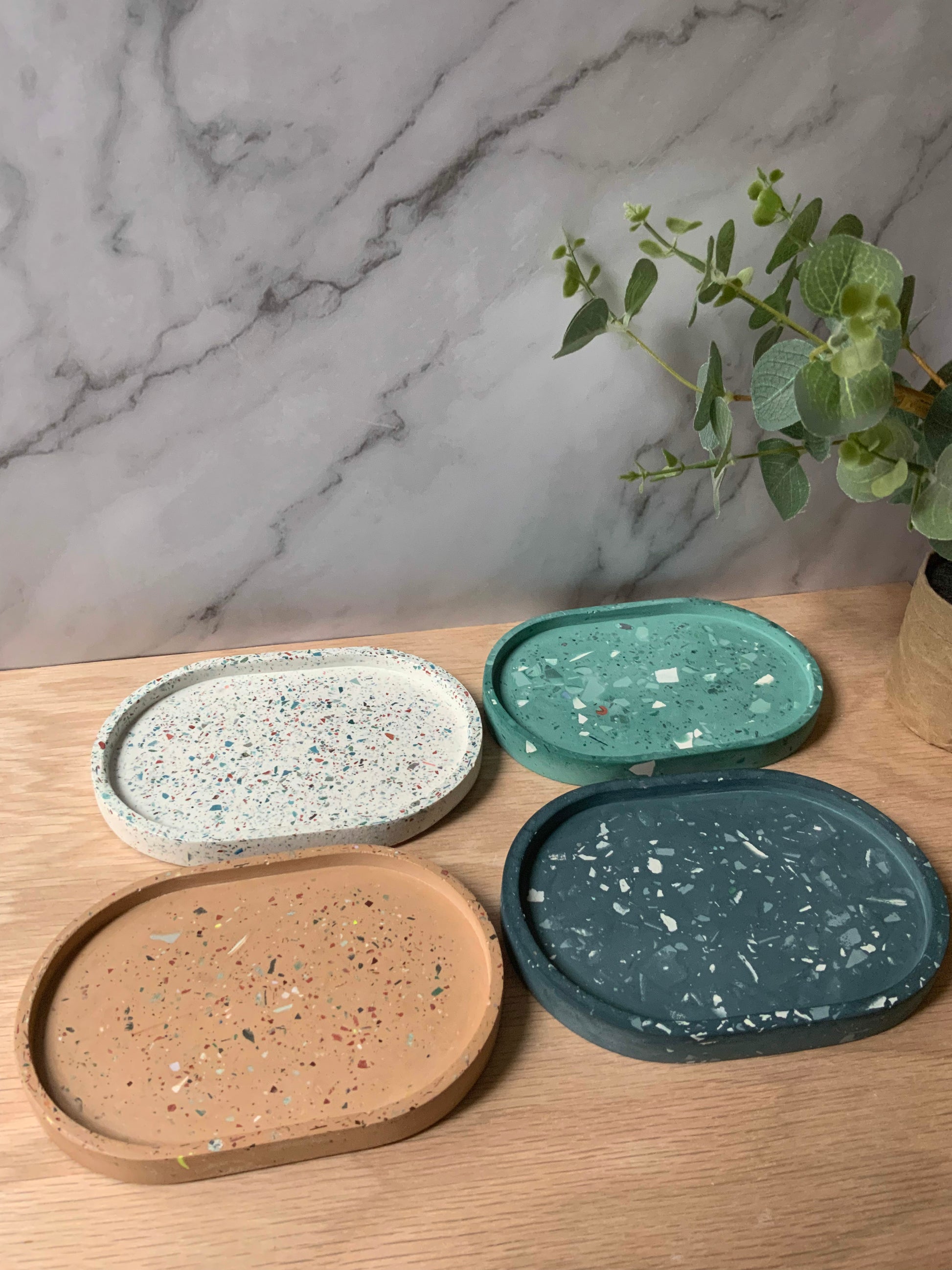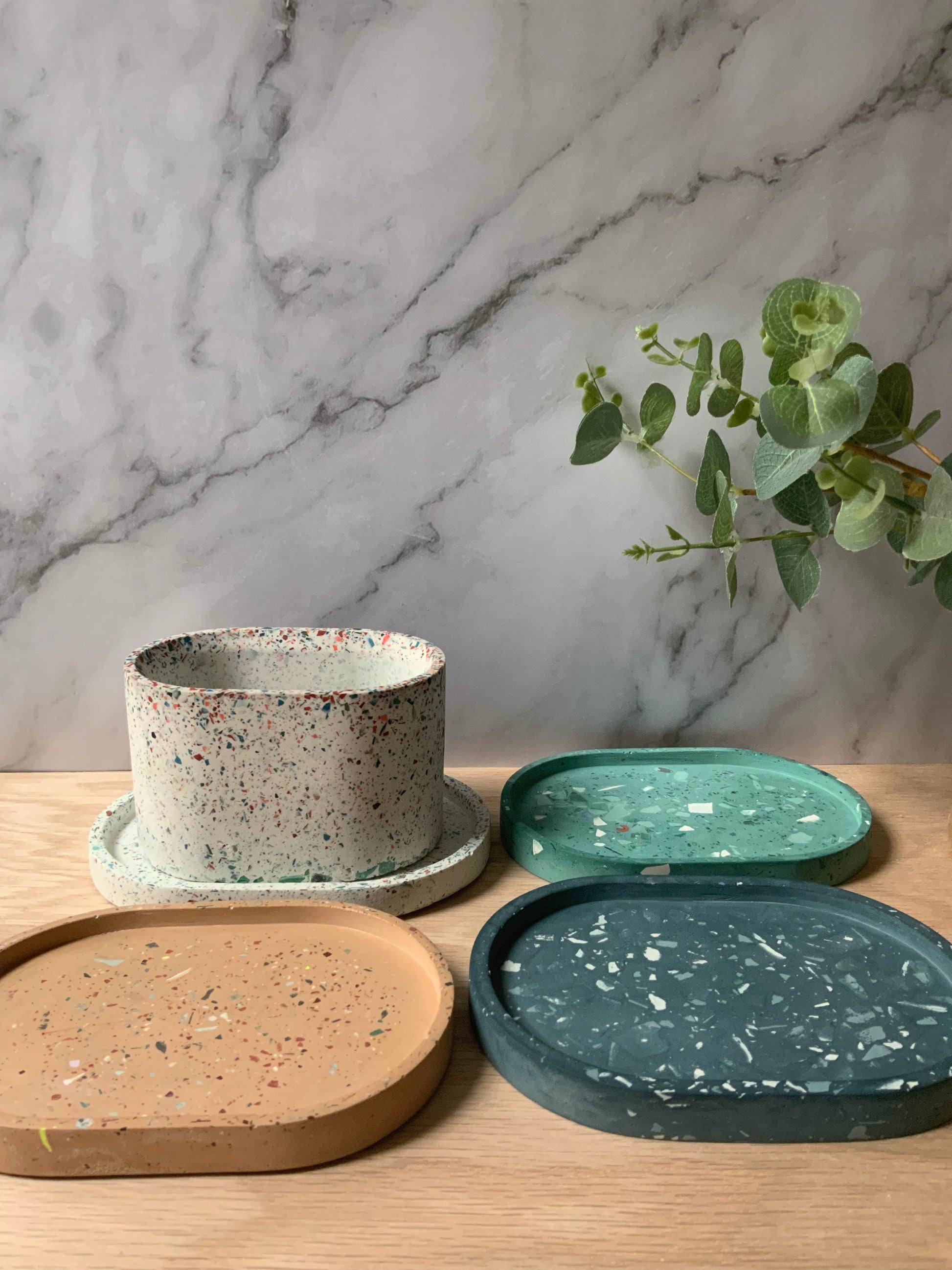 Terrazzo Concrete Oval Tray | candle catch all | Plant tray