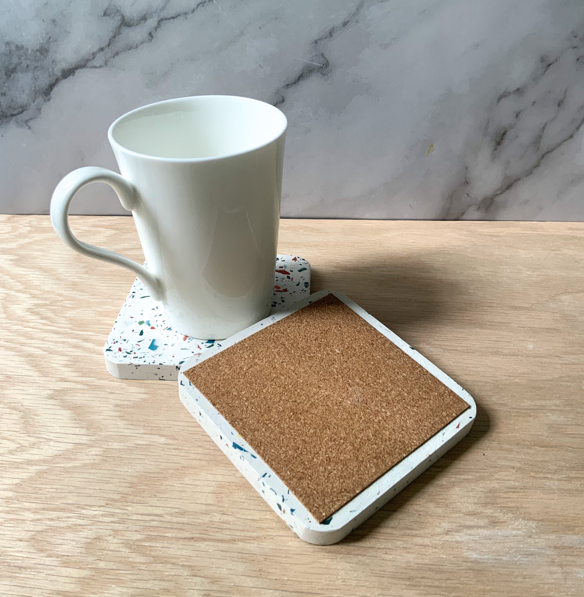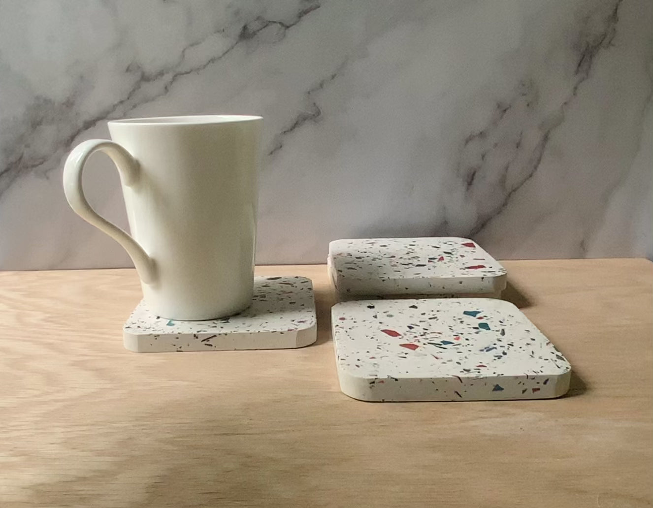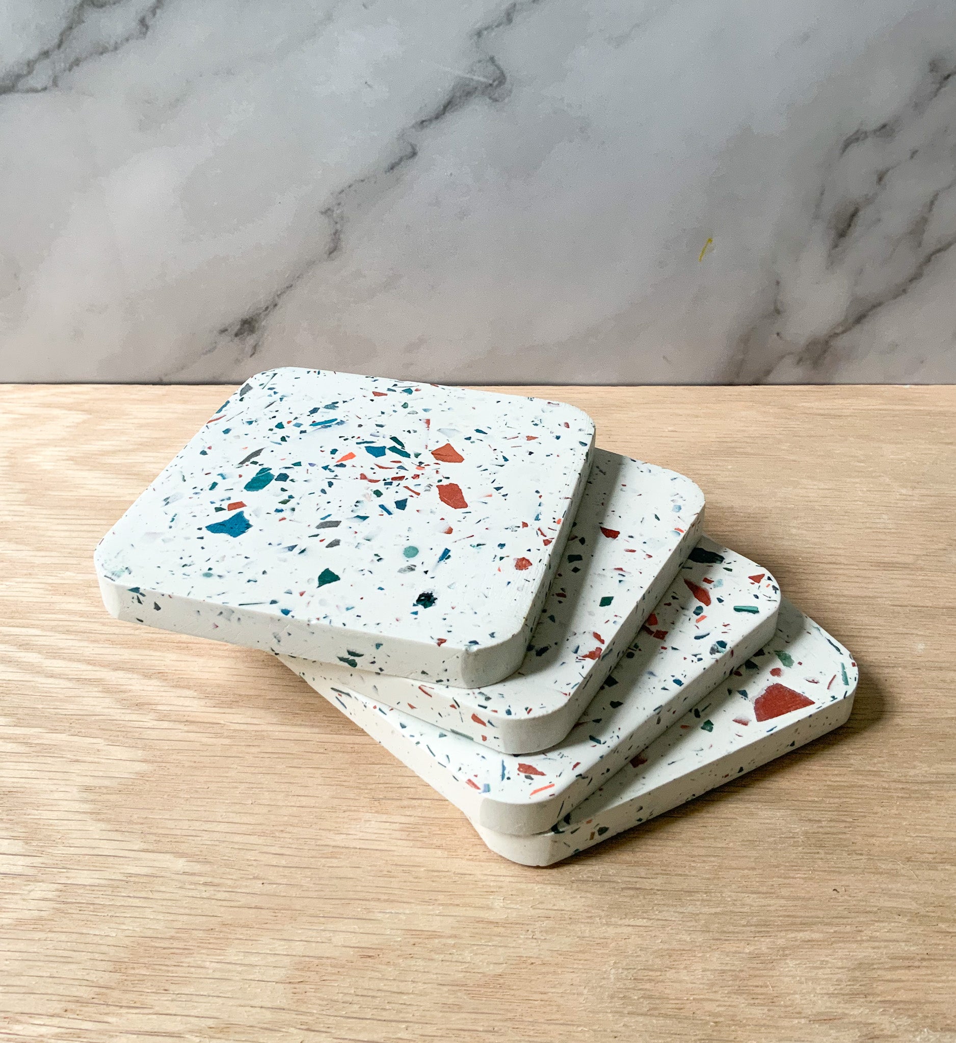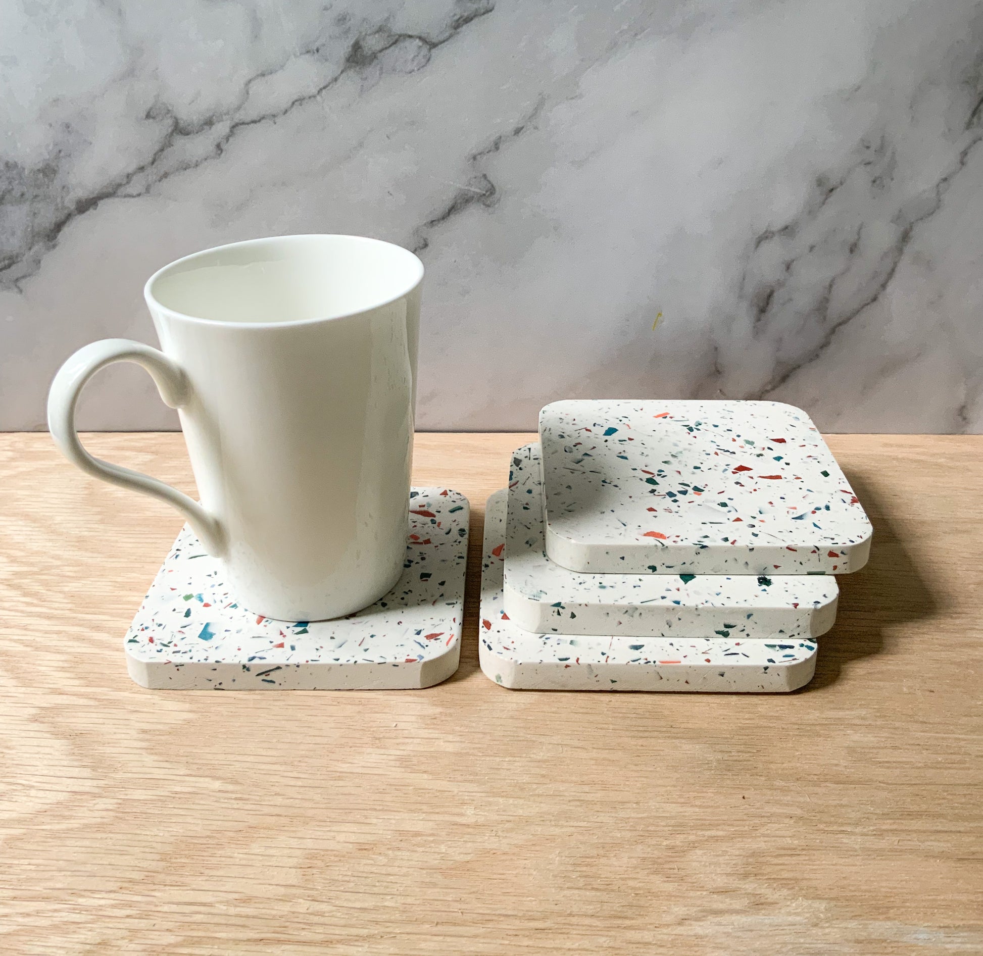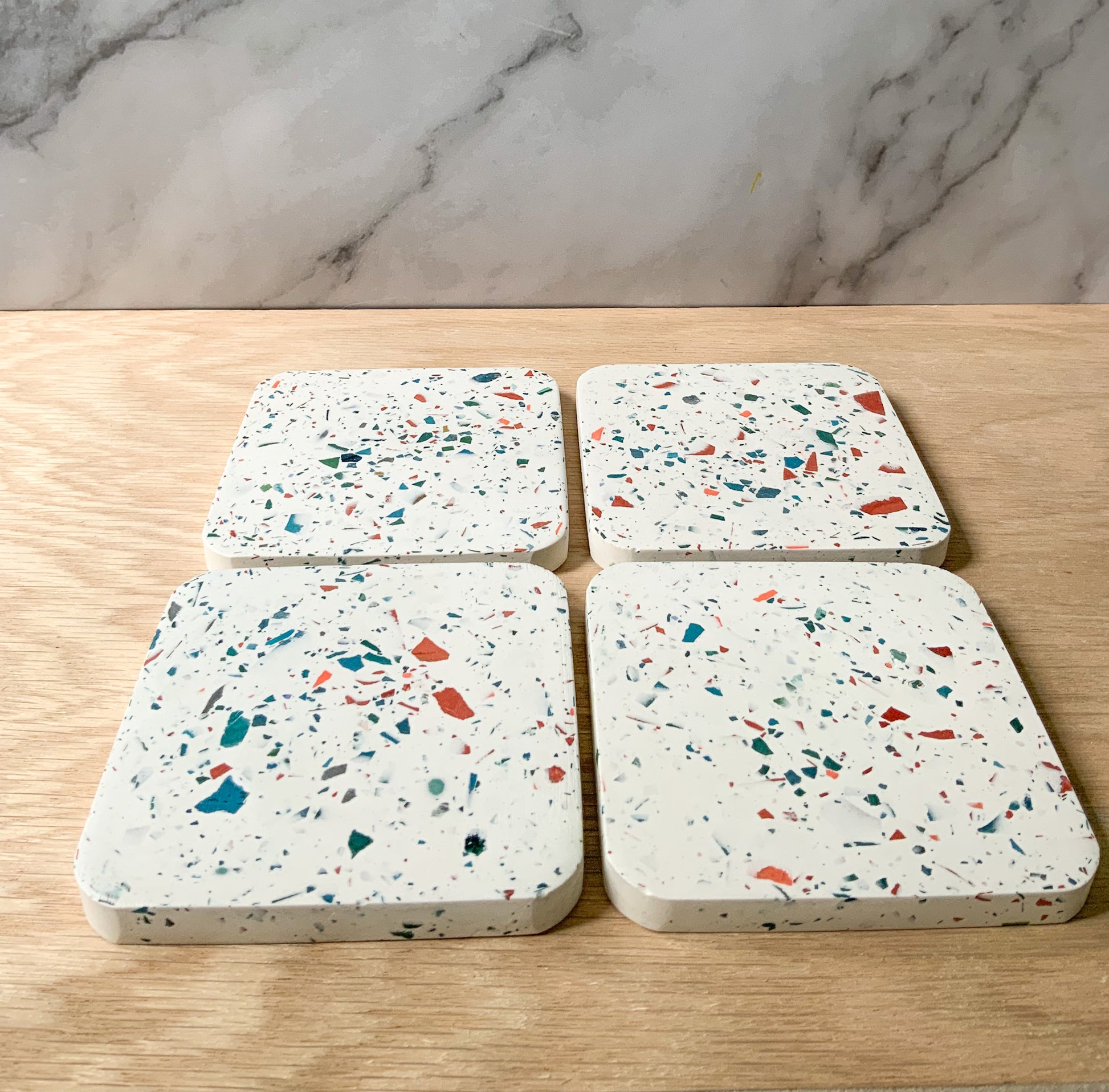 Terrazzo Coaster Set Gypsum Cement | Square modern coaster set of 4 | Neutral Coasters | Housewarming gift