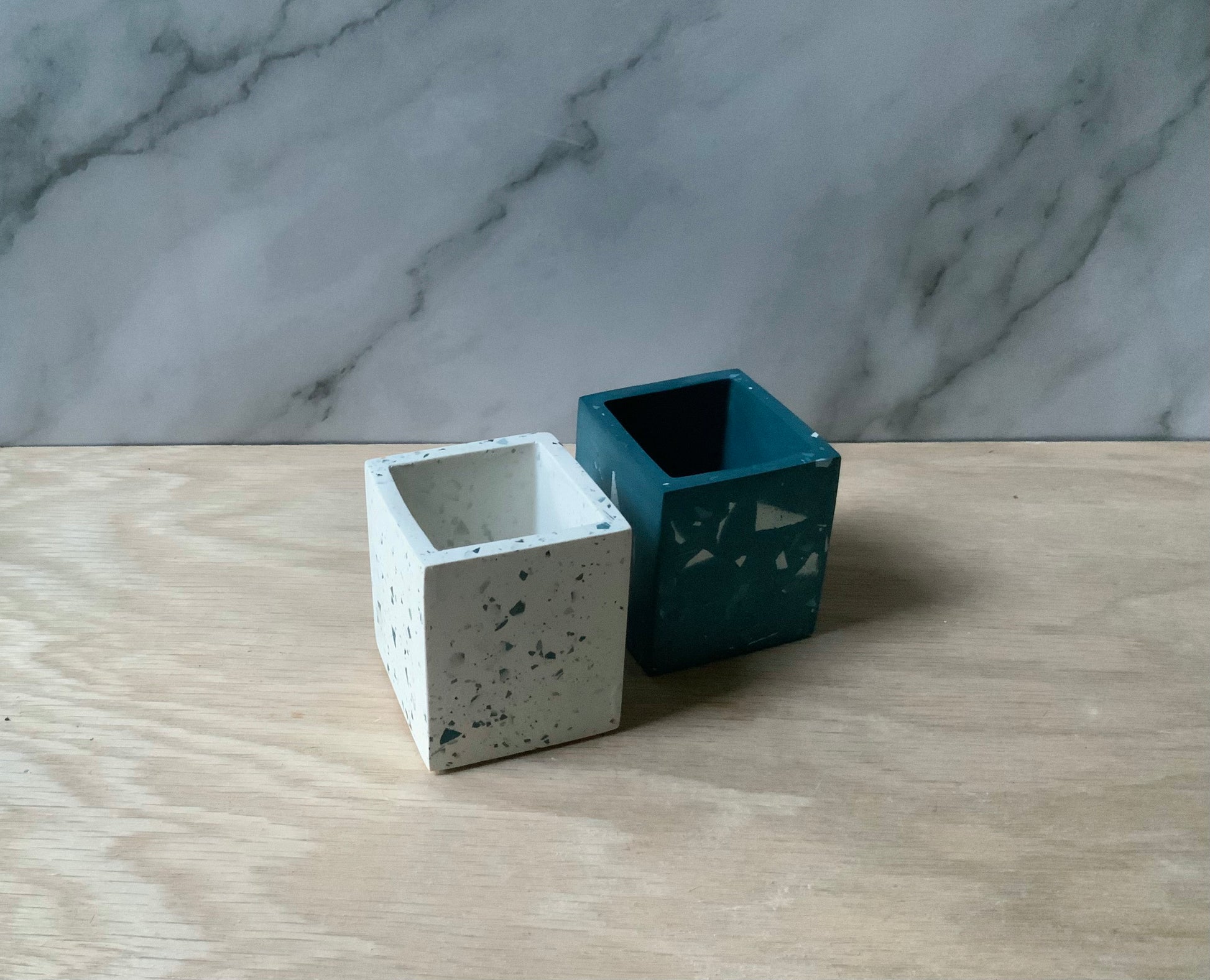 Terrazzo Square Organization Cup | Concrete storage pot | Bathroom accessories | Modern cement home decor
